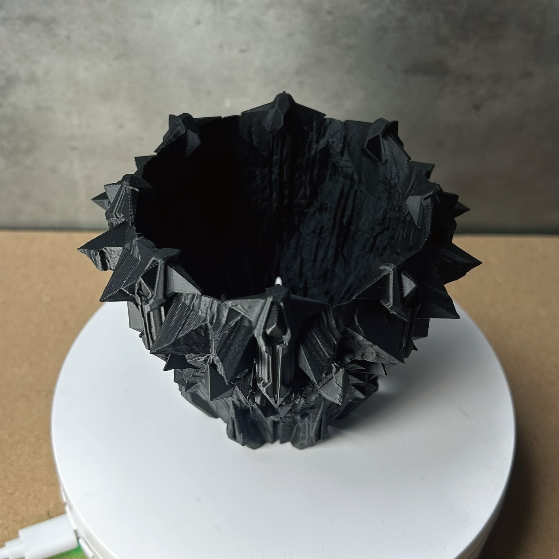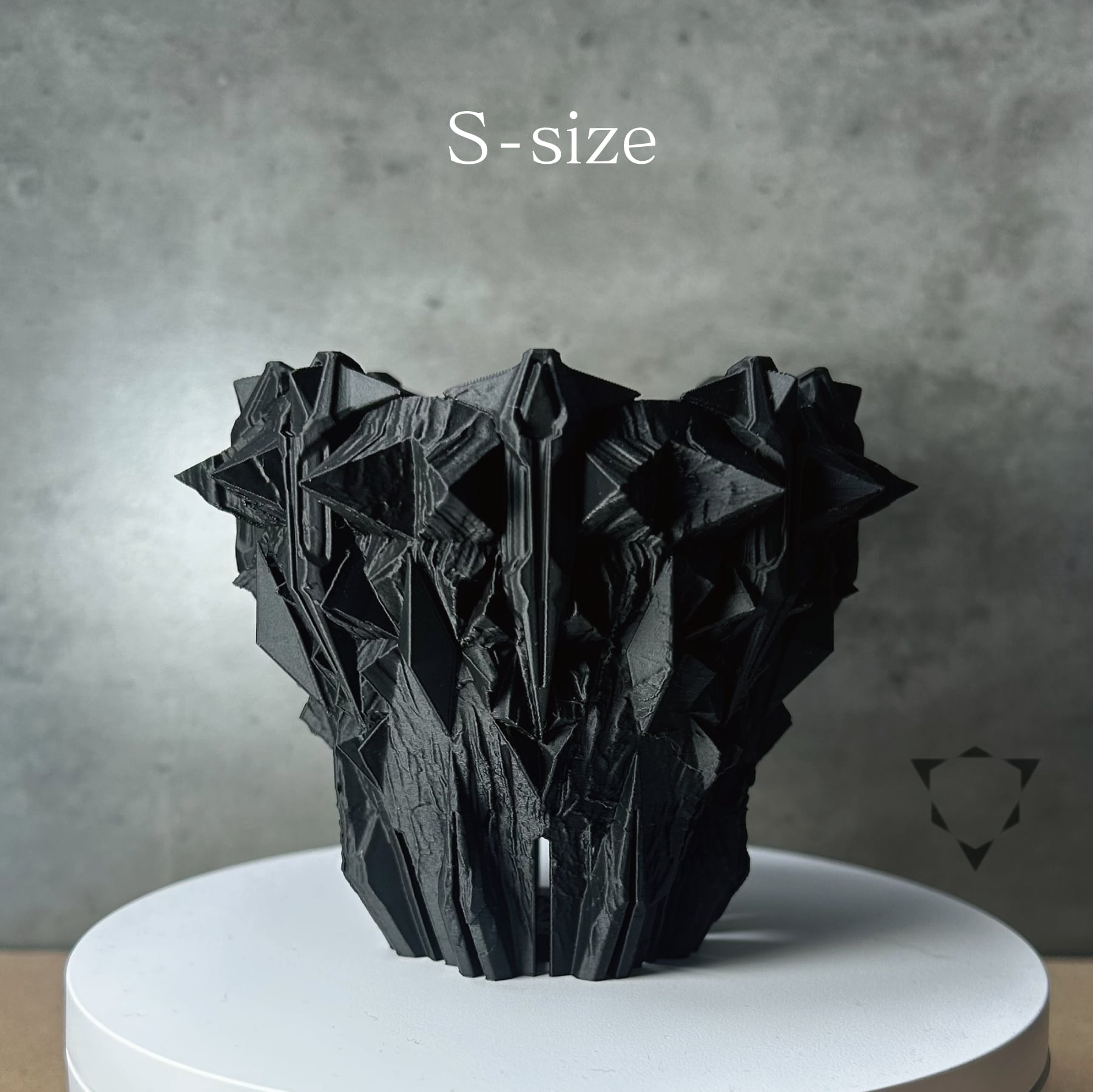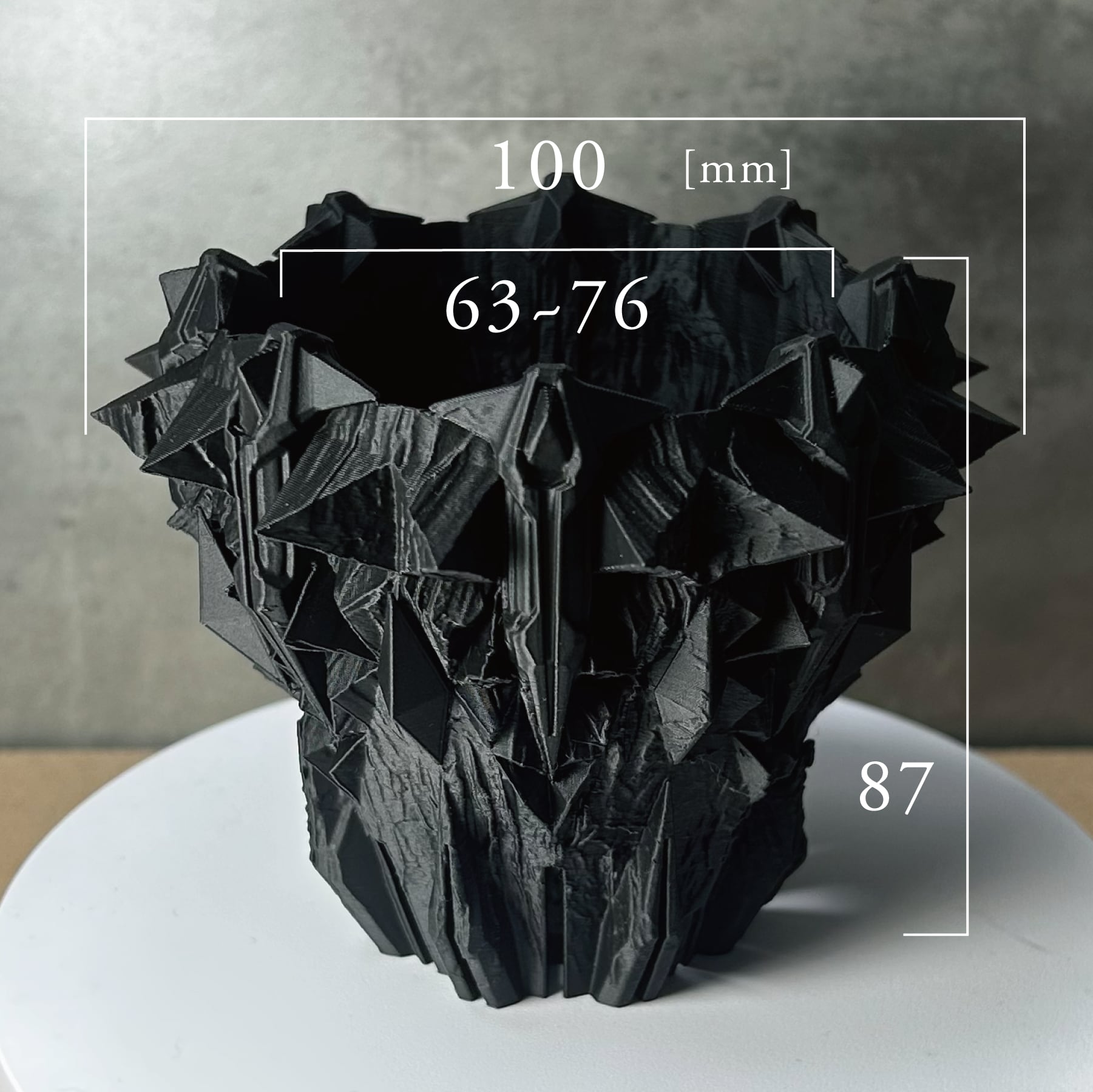 コンセプトは「鉱物の結晶を、悪魔の爪が握りしめている」情景。無機質で秩序ある8角形の結晶体を、有機的で混沌とした悪魔の爪がその内に封じ込める。その激しい拮抗と融合が生み出す、圧倒的な緊張感。鋭利なディテールに指先で触れることで、この3Dプリンター作家鉢が単なる器ではないことを理解するでしょう。暴力的ながらも計算され尽くした造形は、そこに植えられた植物の生命力を、より一層際立たせます。