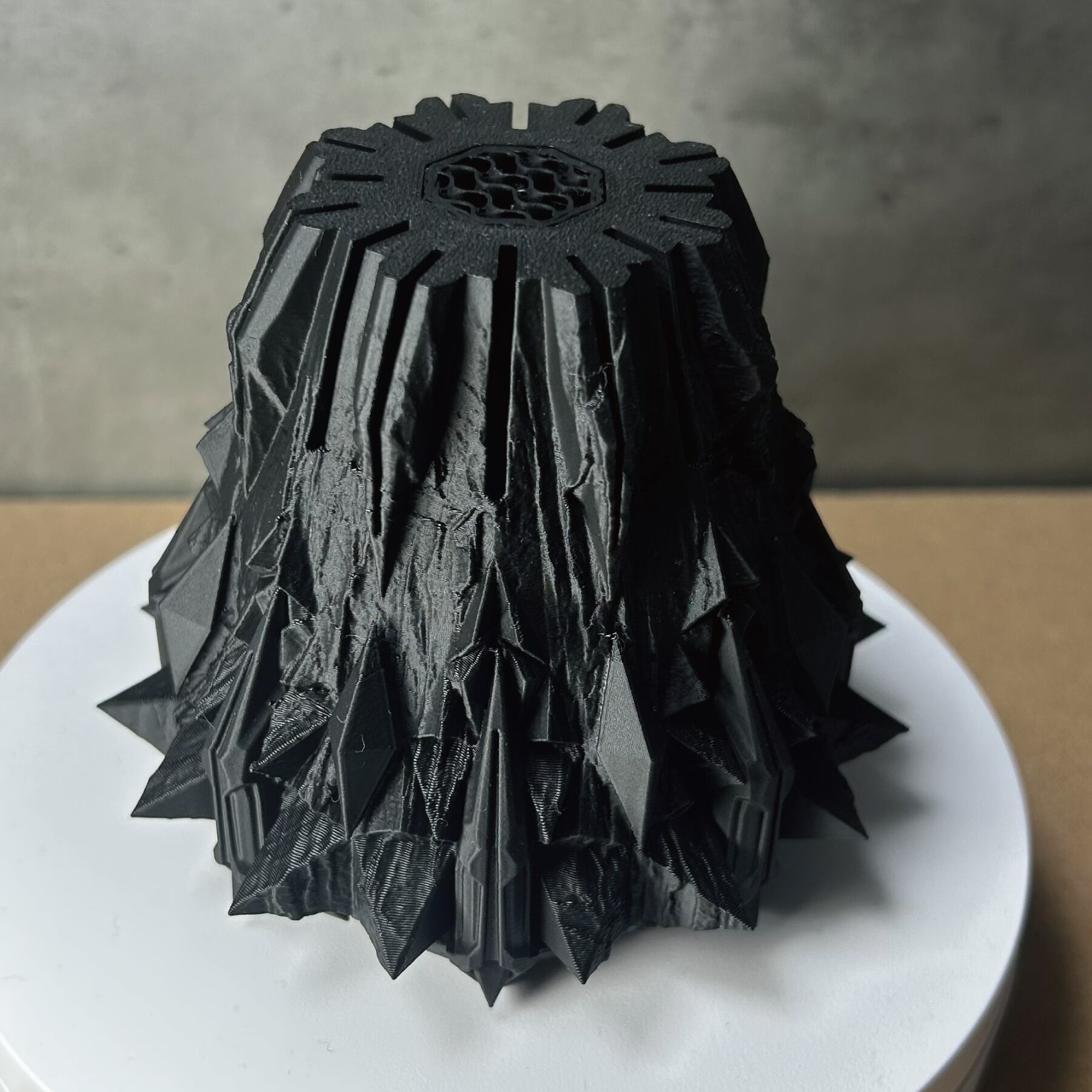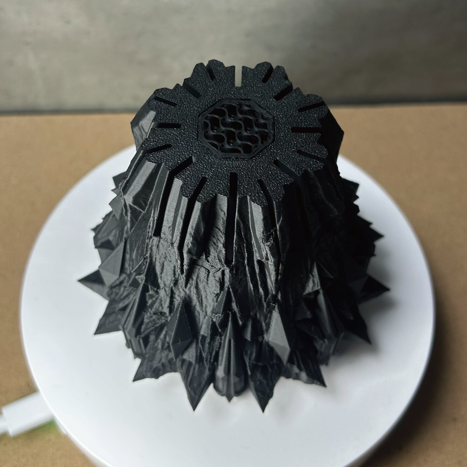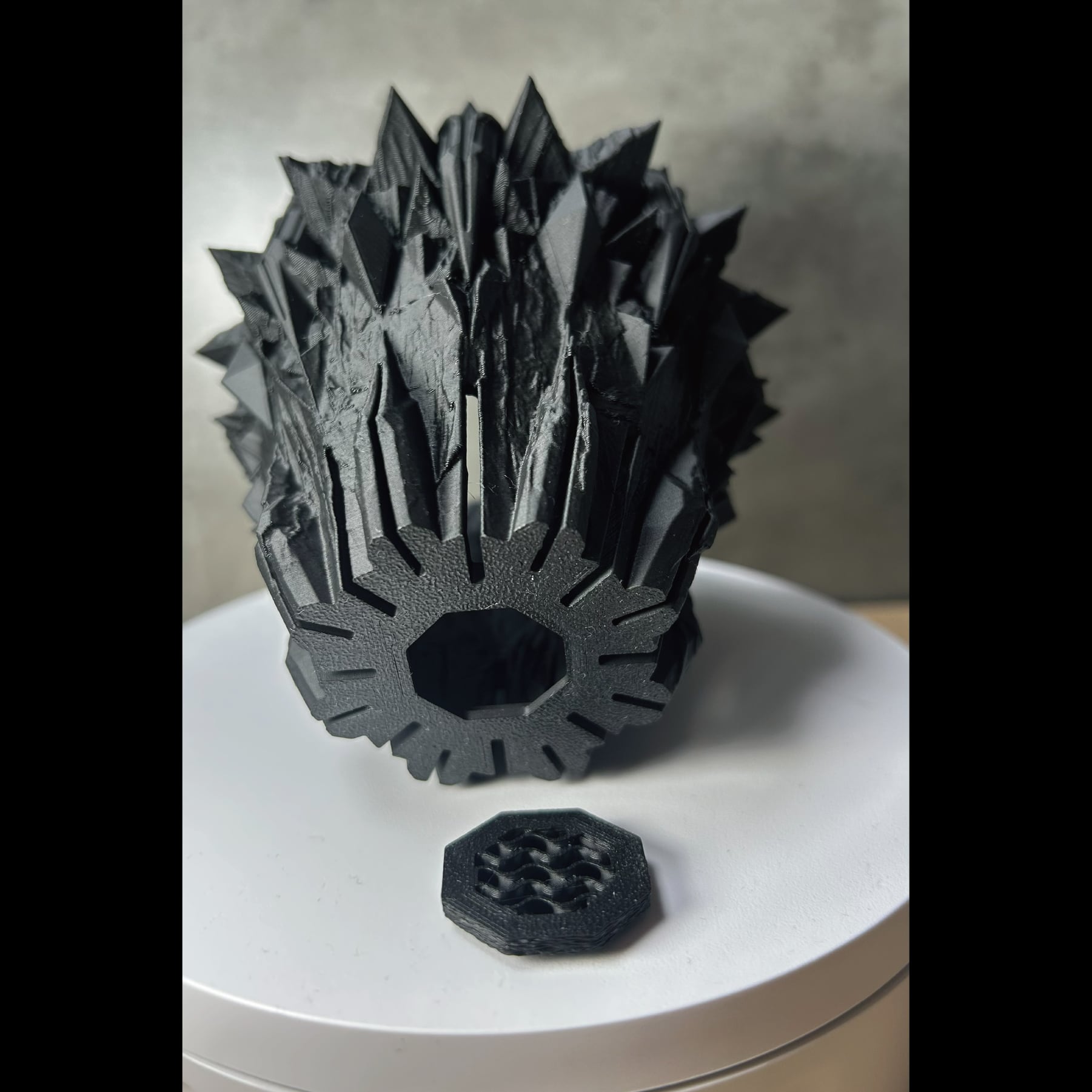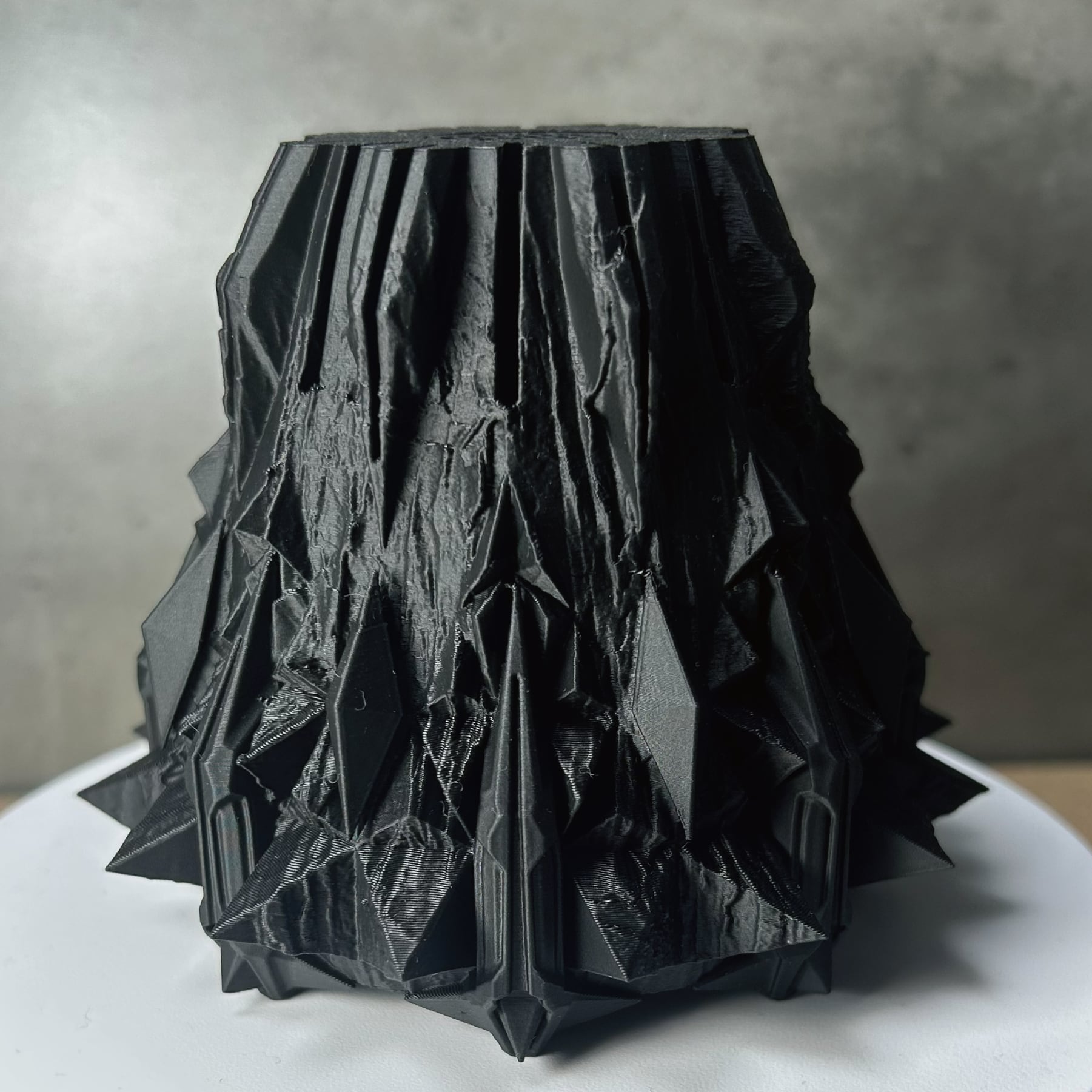 コンセプトは「鉱物の結晶を、悪魔の爪が握りしめている」情景。無機質で秩序ある8角形の結晶体を、有機的で混沌とした悪魔の爪がその内に封じ込める。その激しい拮抗と融合が生み出す、圧倒的な緊張感。鋭利なディテールに指先で触れることで、この3Dプリンター作家鉢が単なる器ではないことを理解するでしょう。暴力的ながらも計算され尽くした造形は、そこに植えられた植物の生命力を、より一層際立たせます。