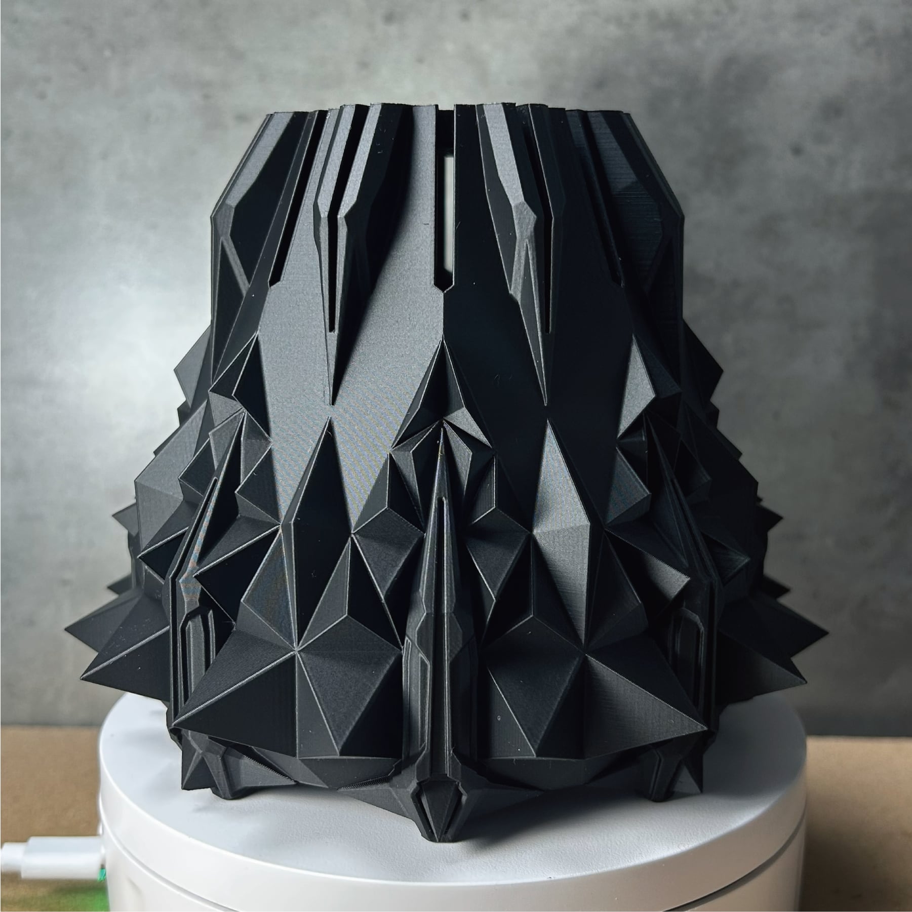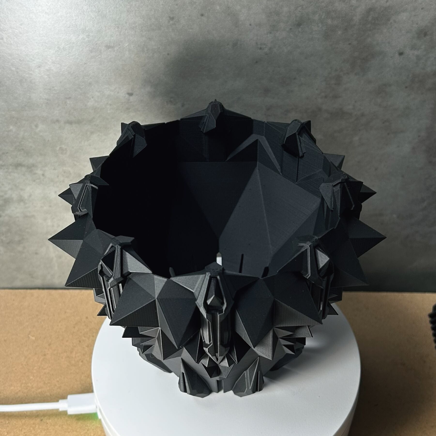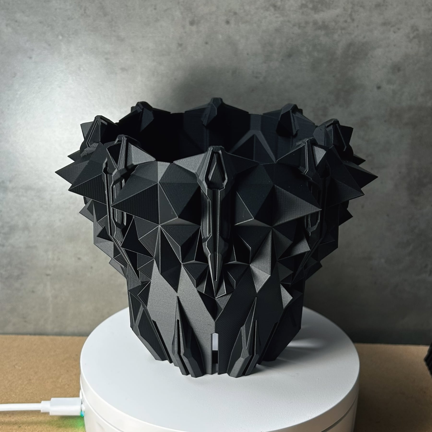 コンセプトは「鉱物の結晶を、悪魔の爪が握りしめている」情景。無機質で秩序ある8角形の結晶体を、有機的で混沌とした悪魔の爪がその内に封じ込める。その激しい拮抗と融合が生み出す、圧倒的な緊張感。鋭利なディテールに指先で触れることで、この3Dプリンター作家鉢が単なる器ではないことを理解するでしょう。暴力的ながらも計算され尽くした造形は、そこに植えられた植物の生命力を、より一層際立たせます。