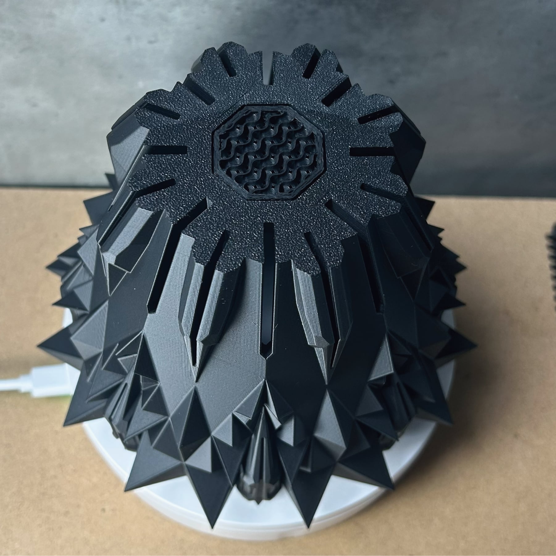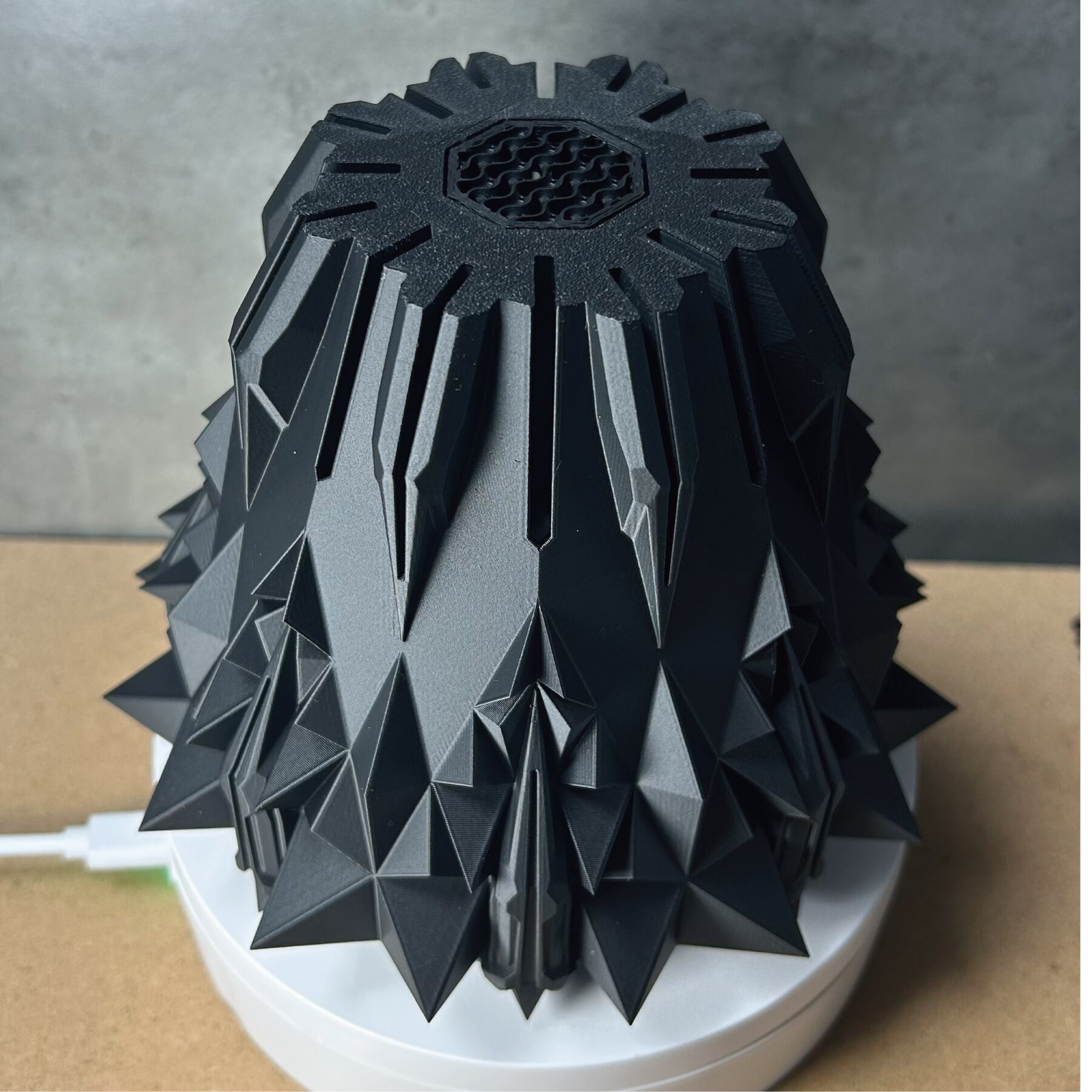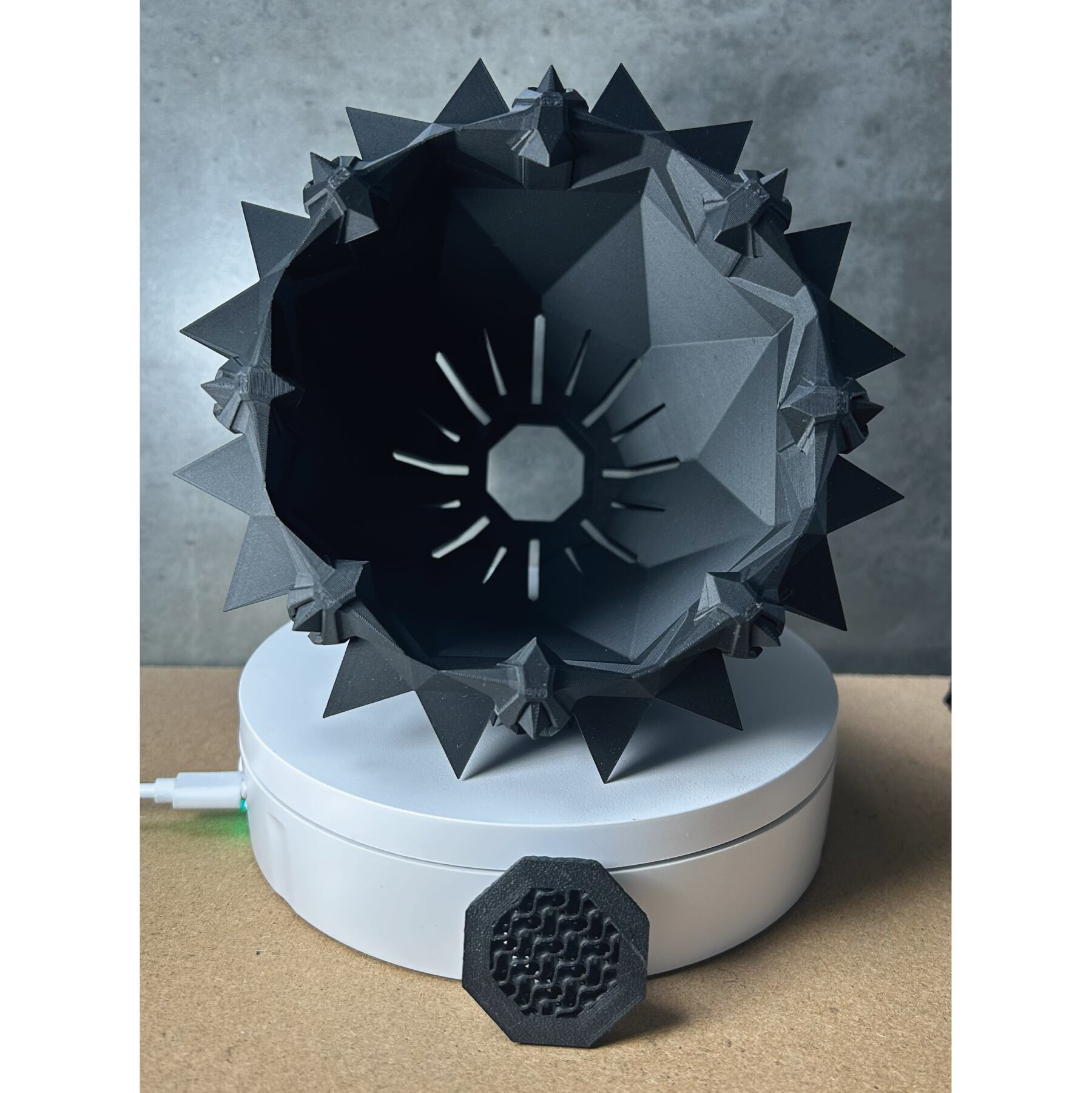 コンセプトは「鉱物の結晶を、悪魔の爪が握りしめている」情景。無機質で秩序ある8角形の結晶体を、有機的で混沌とした悪魔の爪がその内に封じ込める。その激しい拮抗と融合が生み出す、圧倒的な緊張感。鋭利なディテールに指先で触れることで、この3Dプリンター作家鉢が単なる器ではないことを理解するでしょう。暴力的ながらも計算され尽くした造形は、そこに植えられた植物の生命力を、より一層際立たせます。