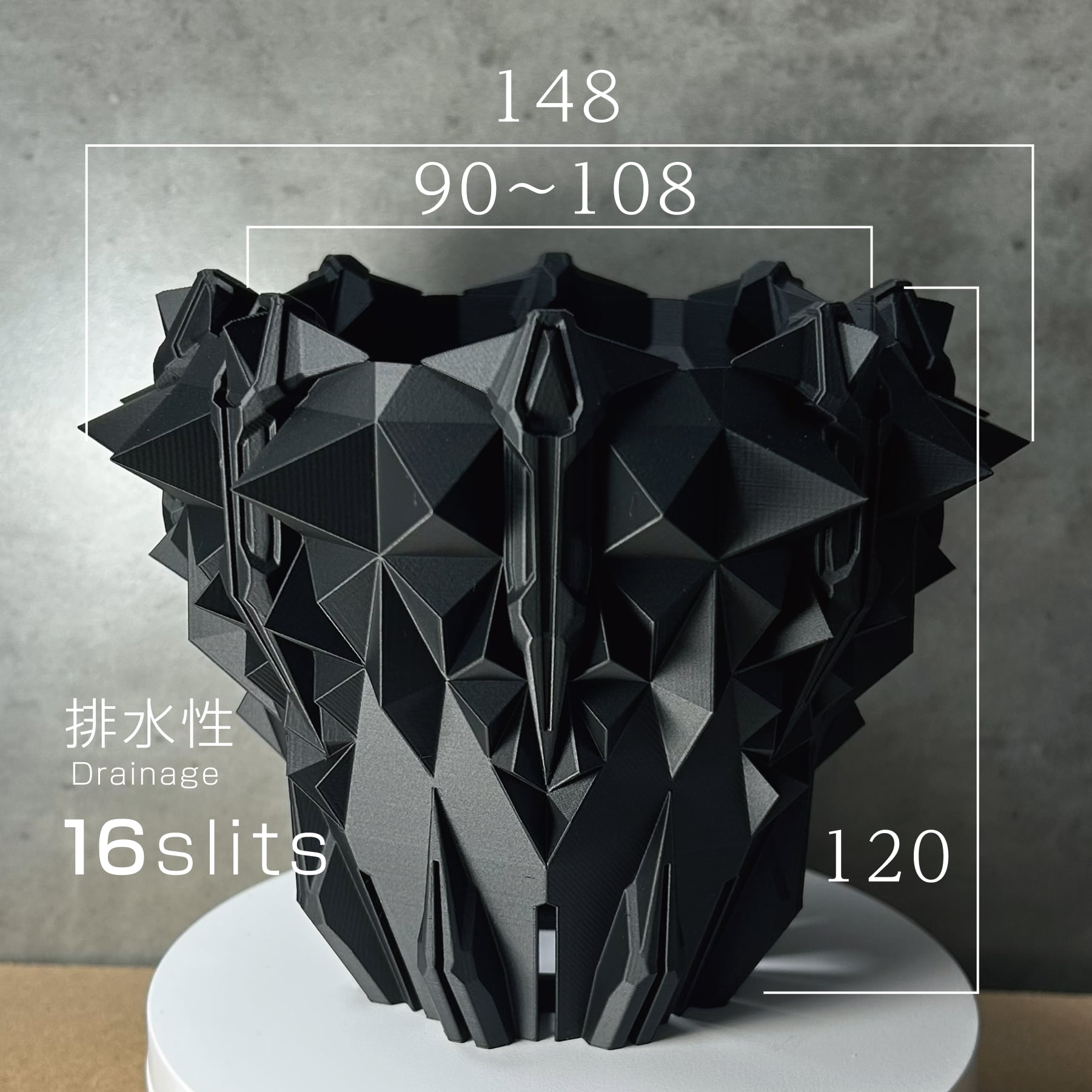 特徴: 悪魔と結晶のハイブリッドデザイン、砕(表面に砕かれたようなテクスチャを使用)、排水・通気性に優れた大型スリット(土壌確認窓)