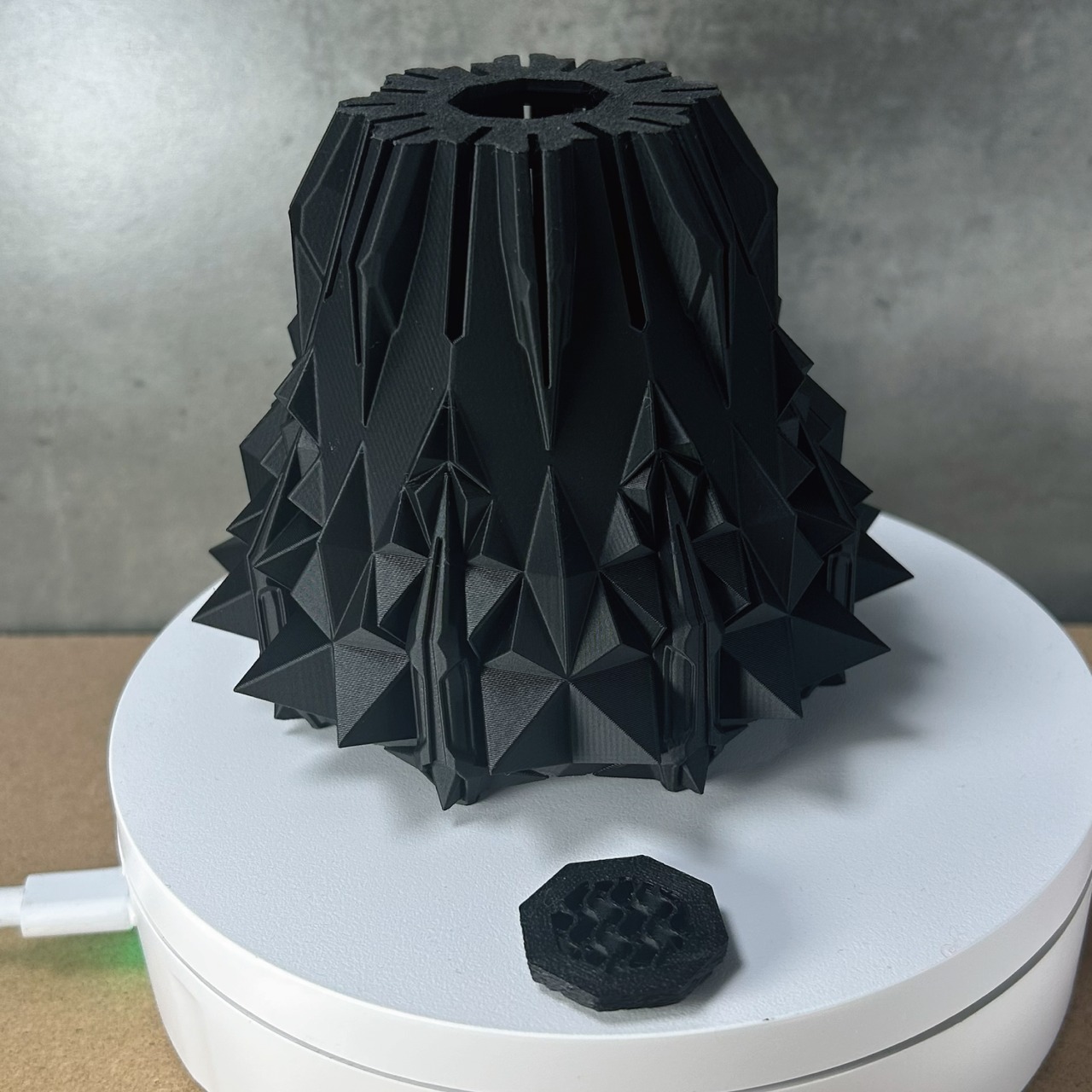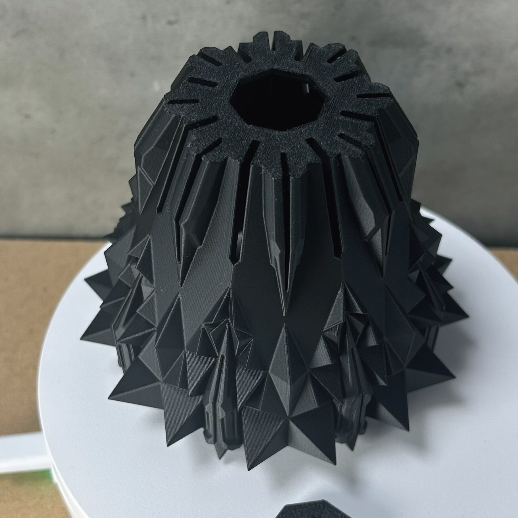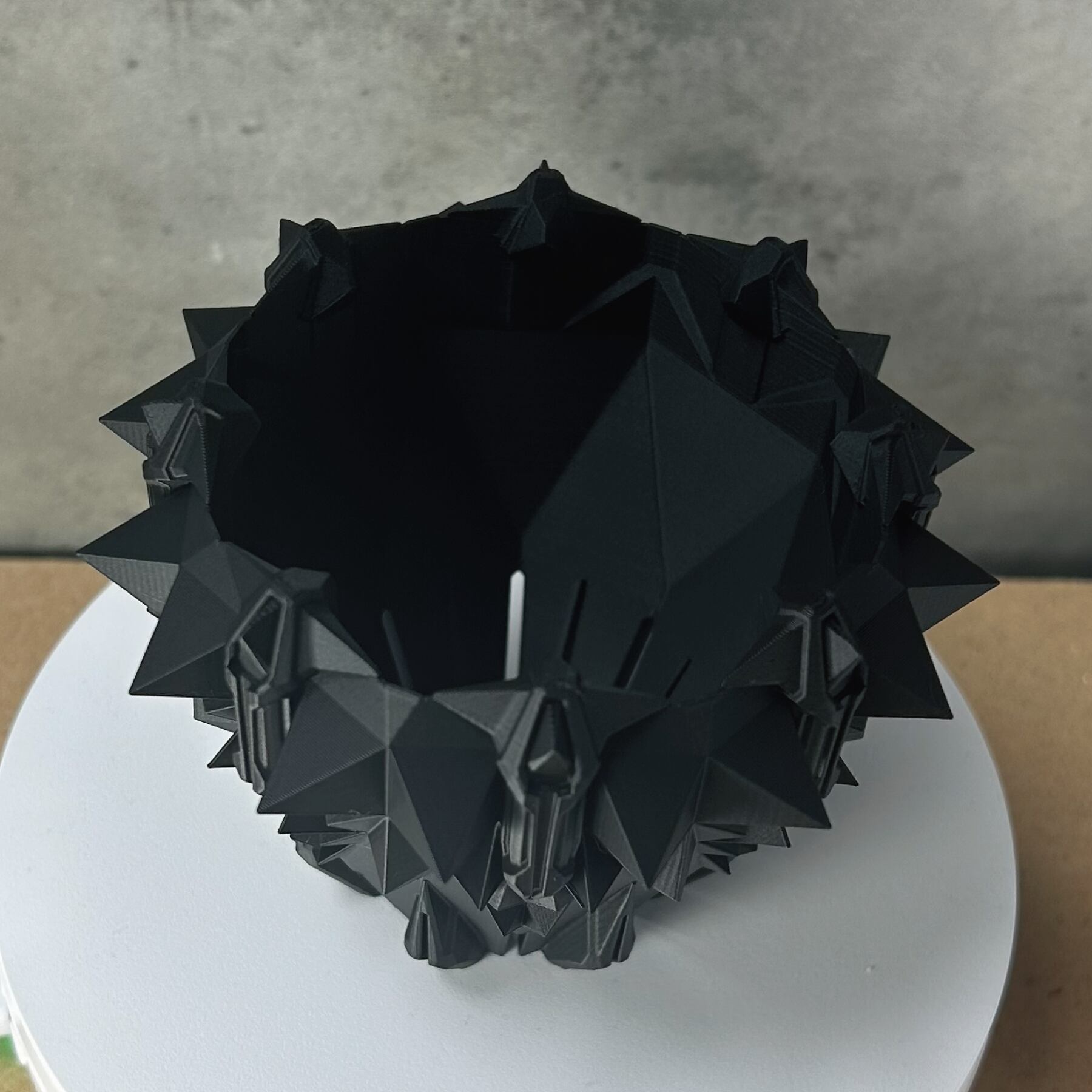 コンセプトは「鉱物の結晶を、悪魔の爪が握りしめている」情景。無機質で秩序ある8角形の結晶体を、有機的で混沌とした悪魔の爪がその内に封じ込める。その激しい拮抗と融合が生み出す、圧倒的な緊張感。鋭利なディテールに指先で触れることで、この3Dプリンター作家鉢が単なる器ではないことを理解するでしょう。暴力的ながらも計算され尽くした造形は、そこに植えられた植物の生命力を、より一層際立たせます。