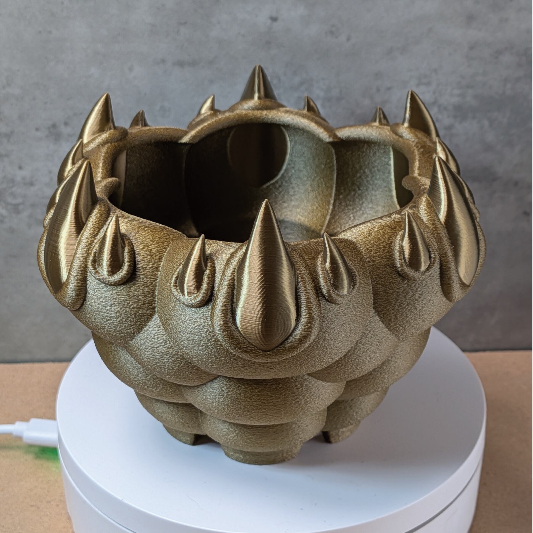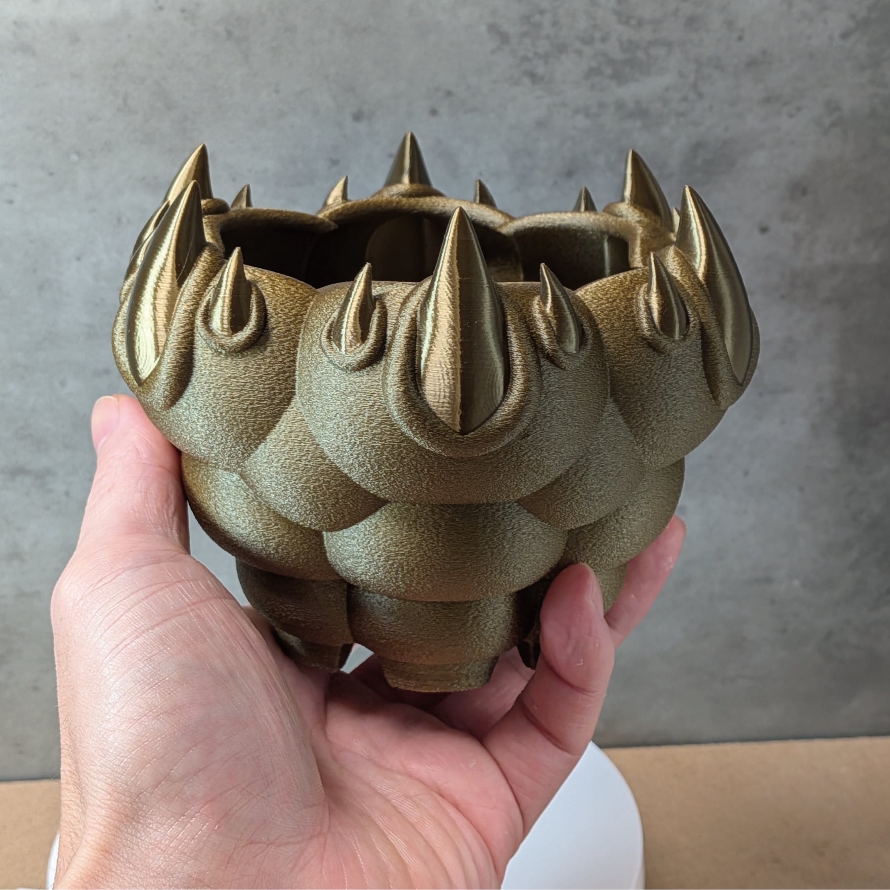 3Dプリンターで作成した商品のため積層痕などあります。また、底部分は艶がでます。足つきなど逆さの造形の場合は最上層に艶があります。