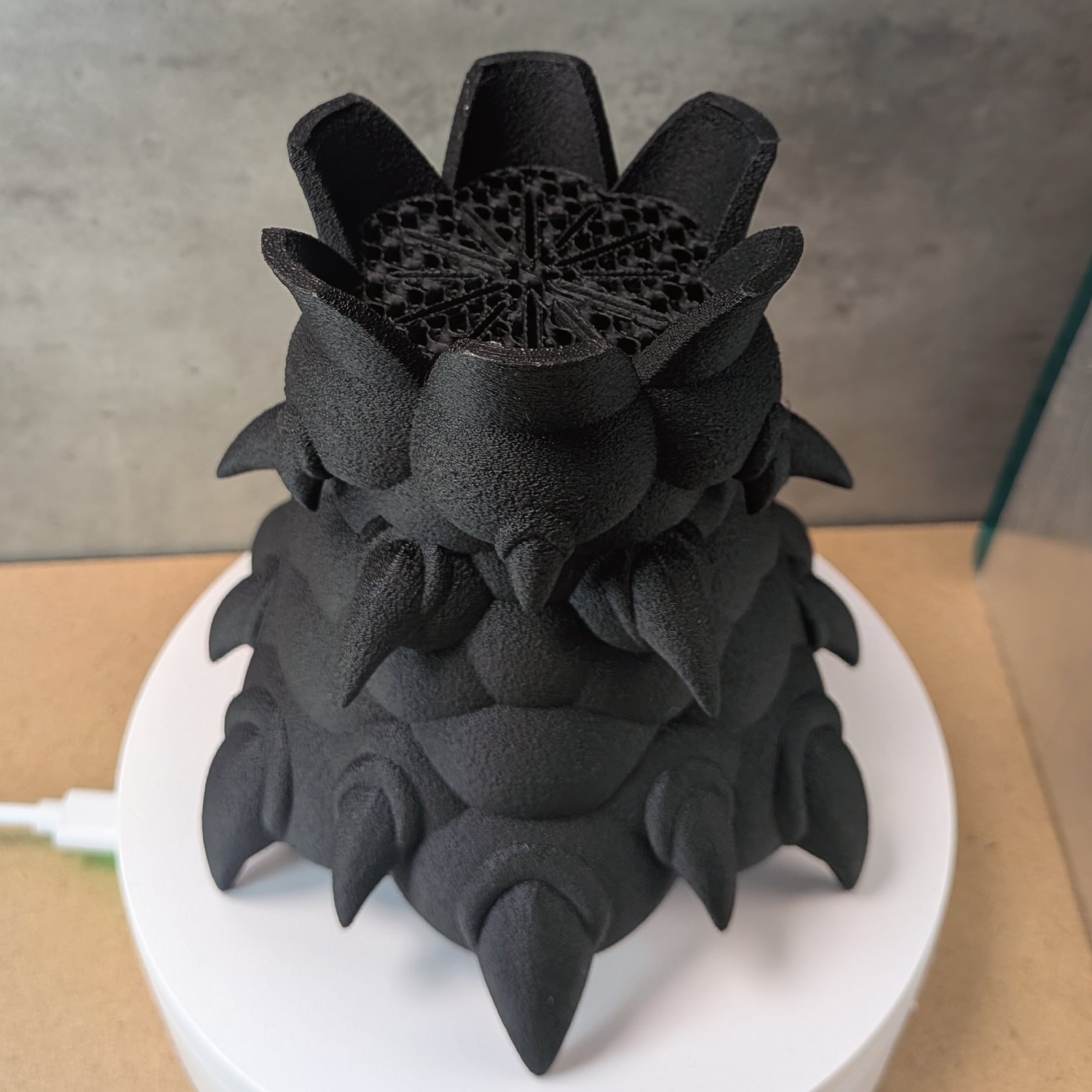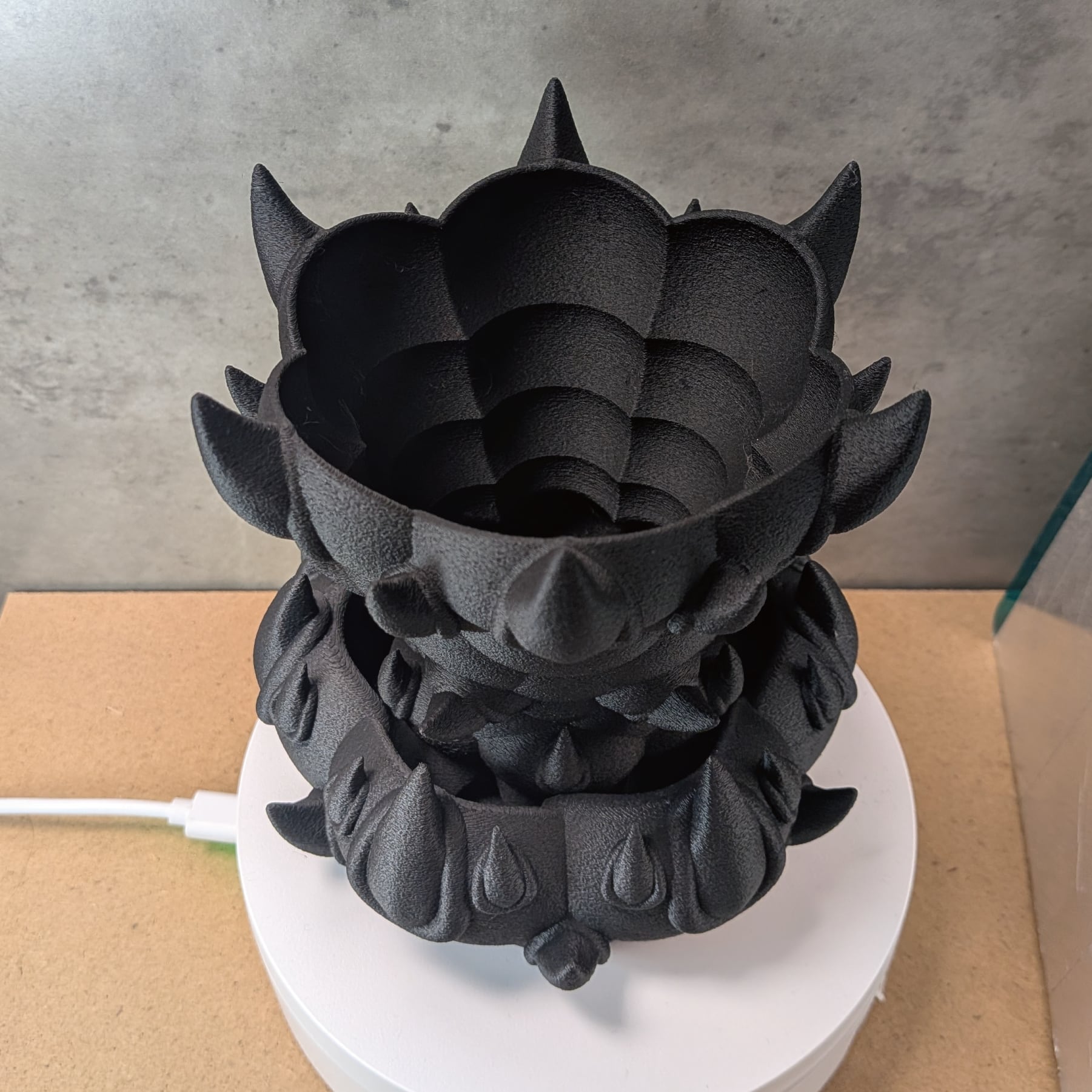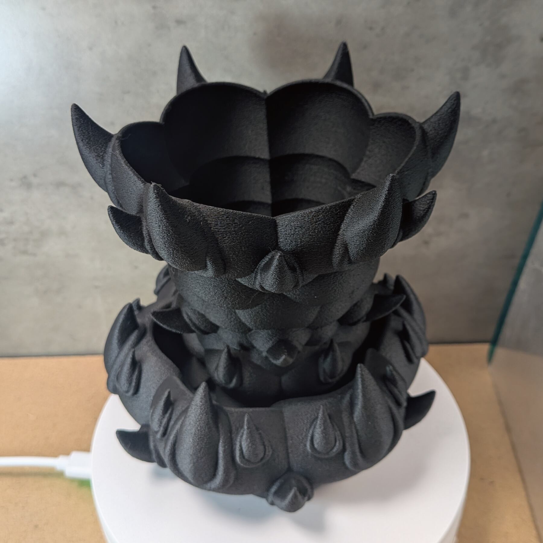 3Dプリンターで作成した商品のため積層痕などあります。また、底部分は艶がでます。足つきなど逆さの造形の場合は最上層に艶があります。