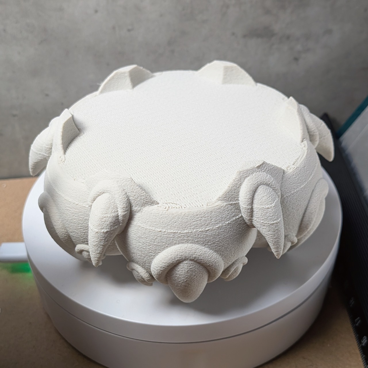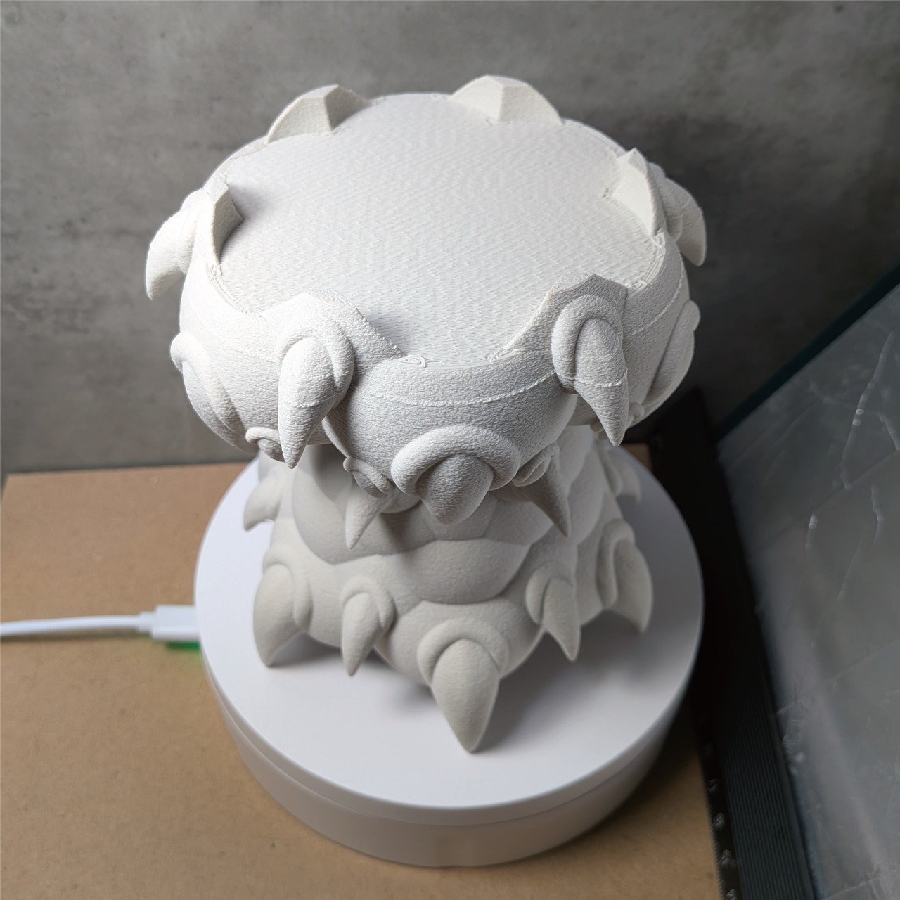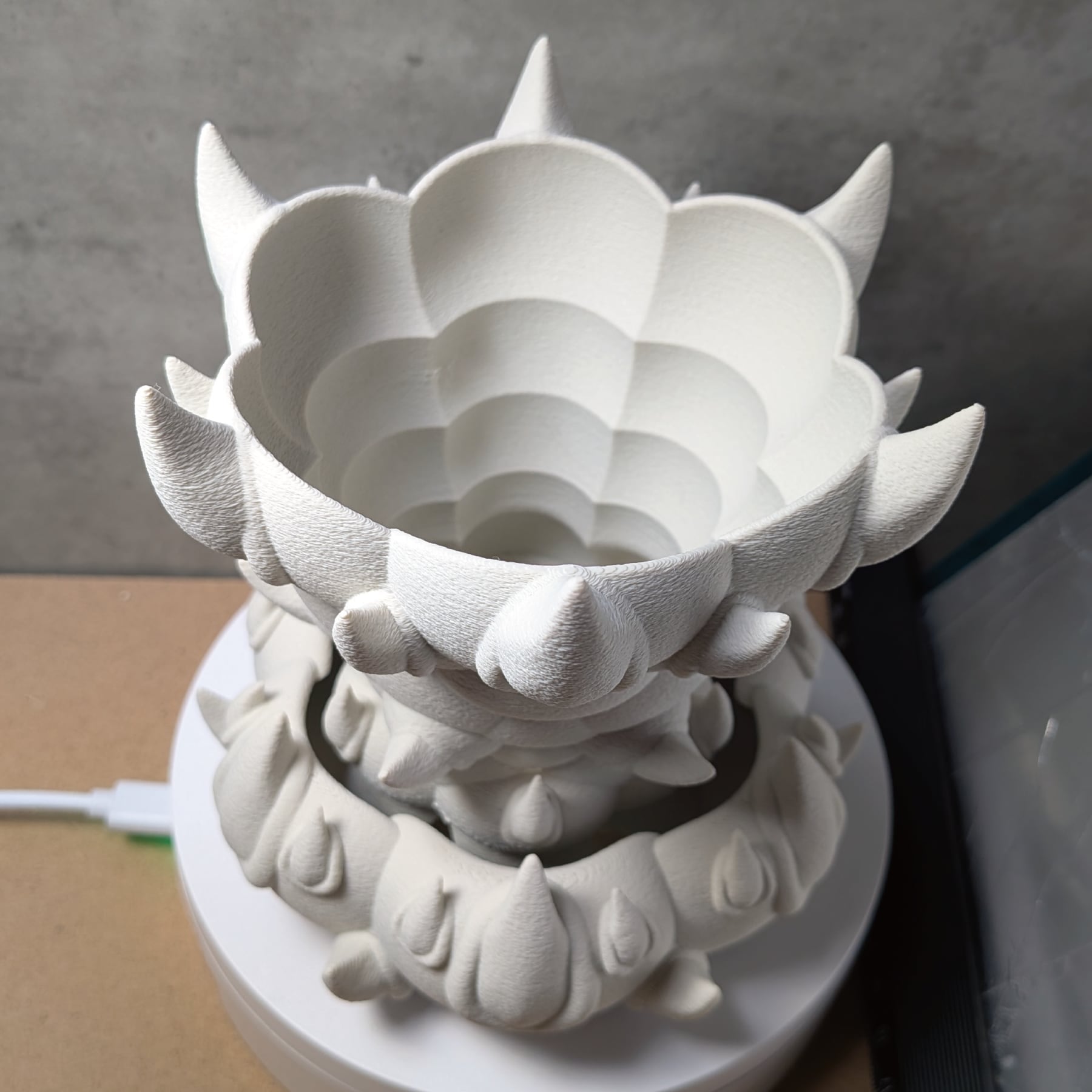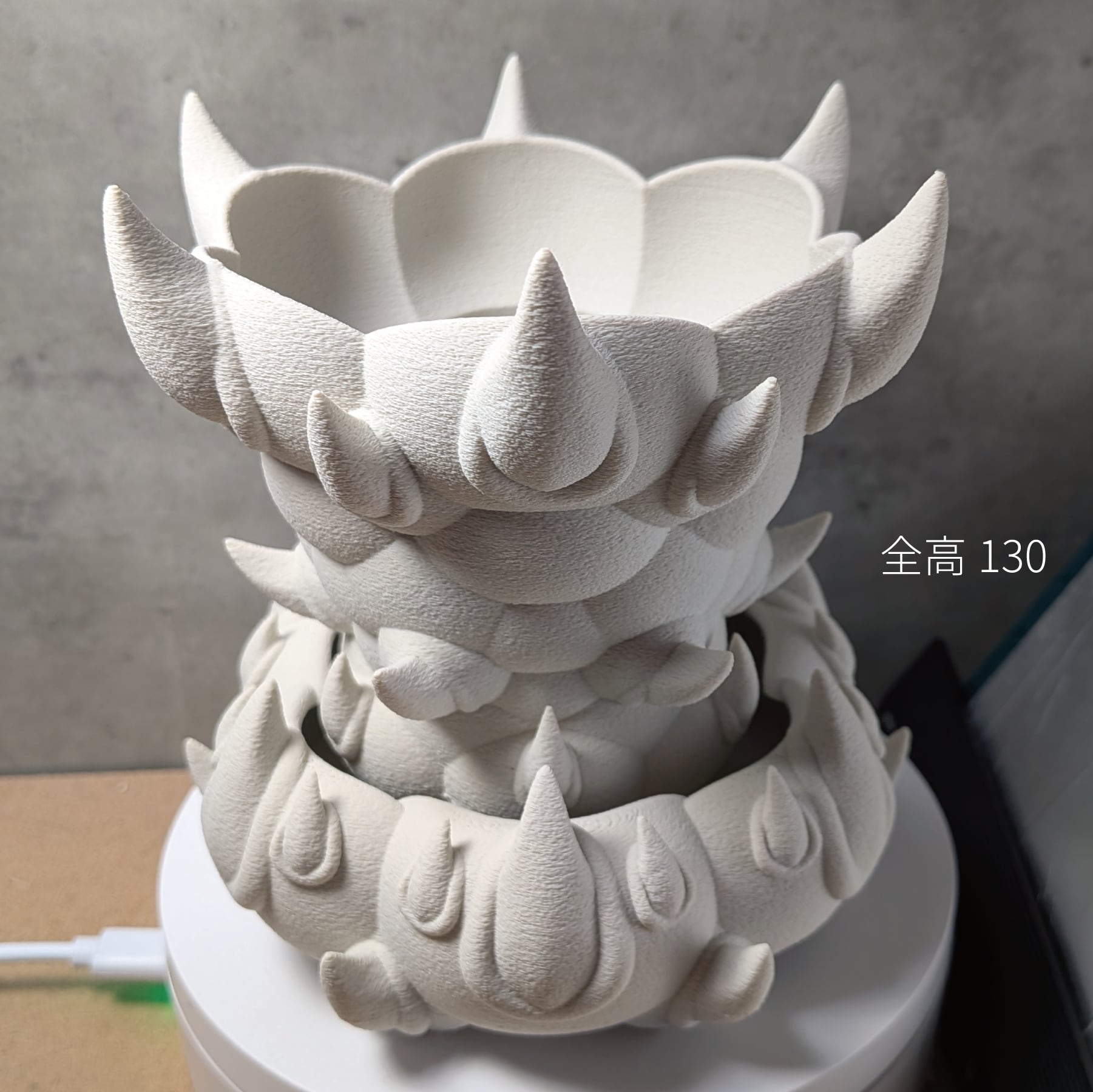 3Dプリンターで作成した商品のため積層痕などあります。また、底部分は艶がでます。足つきなど逆さの造形の場合は最上層に艶があります。