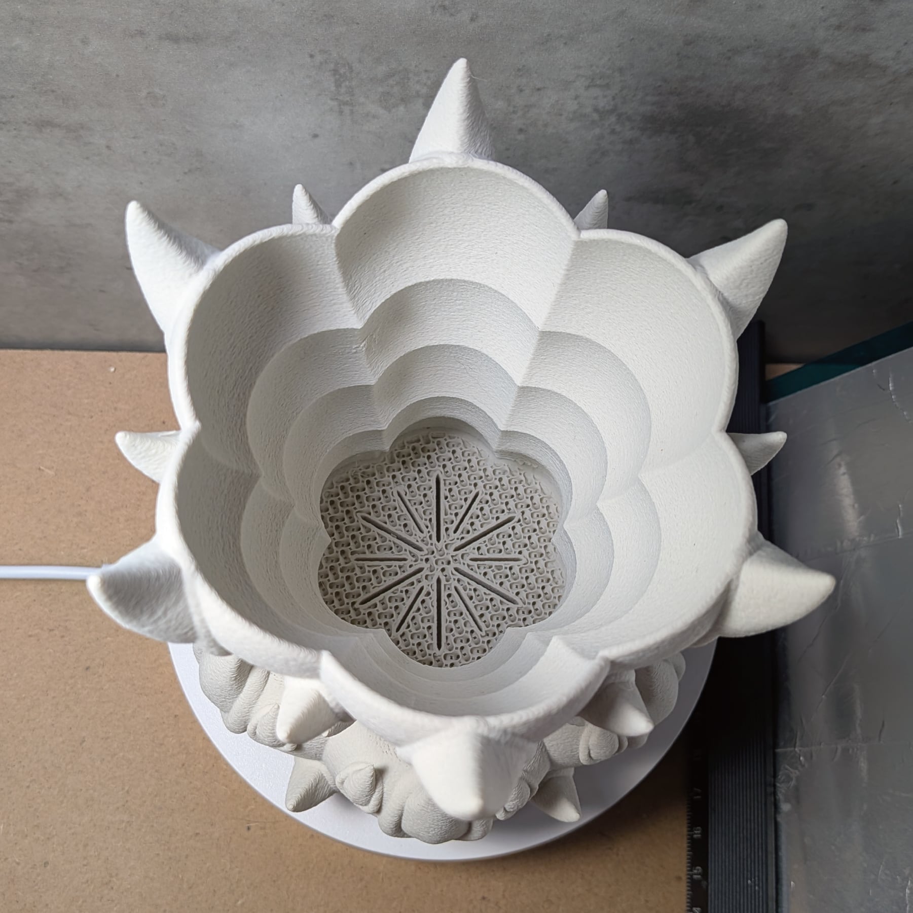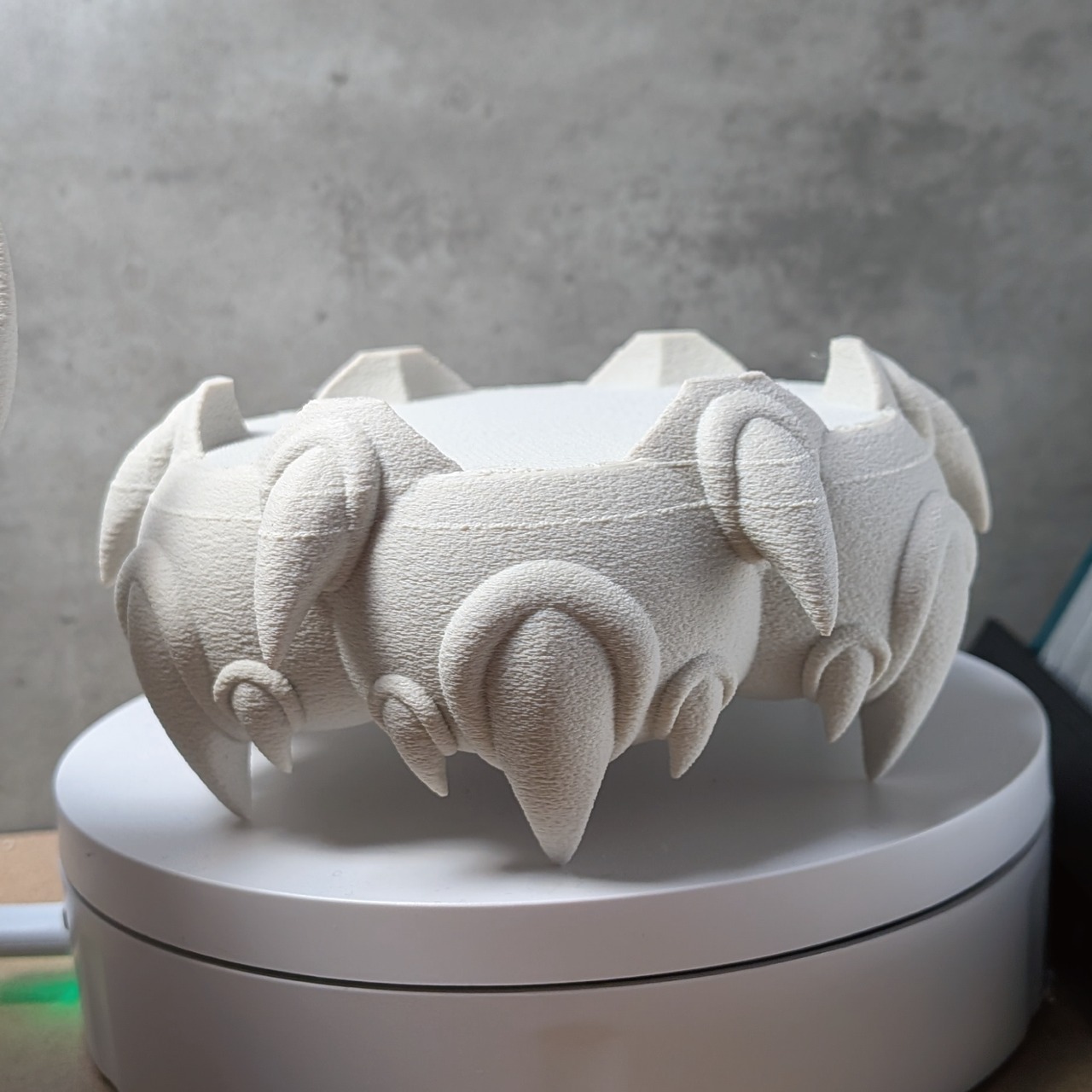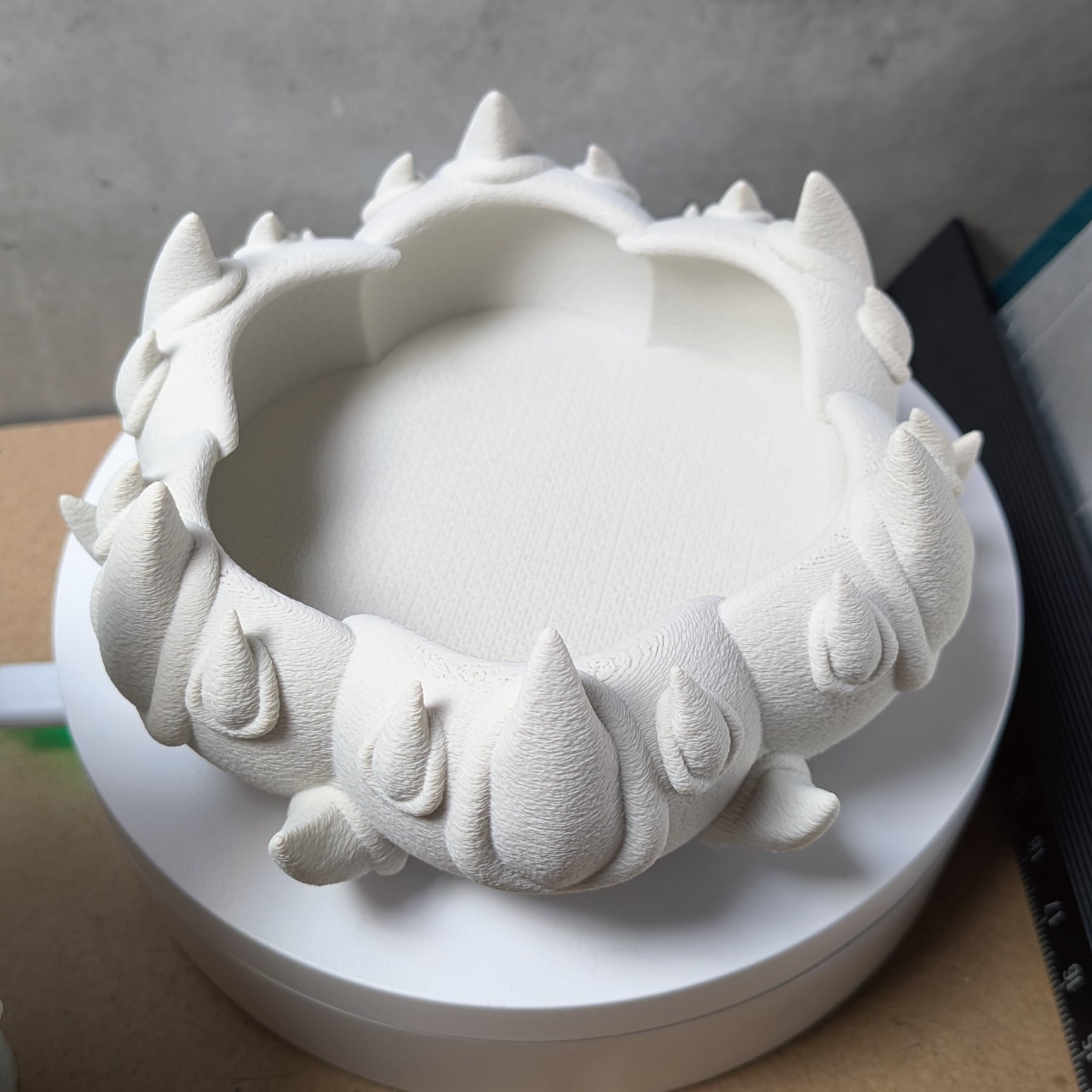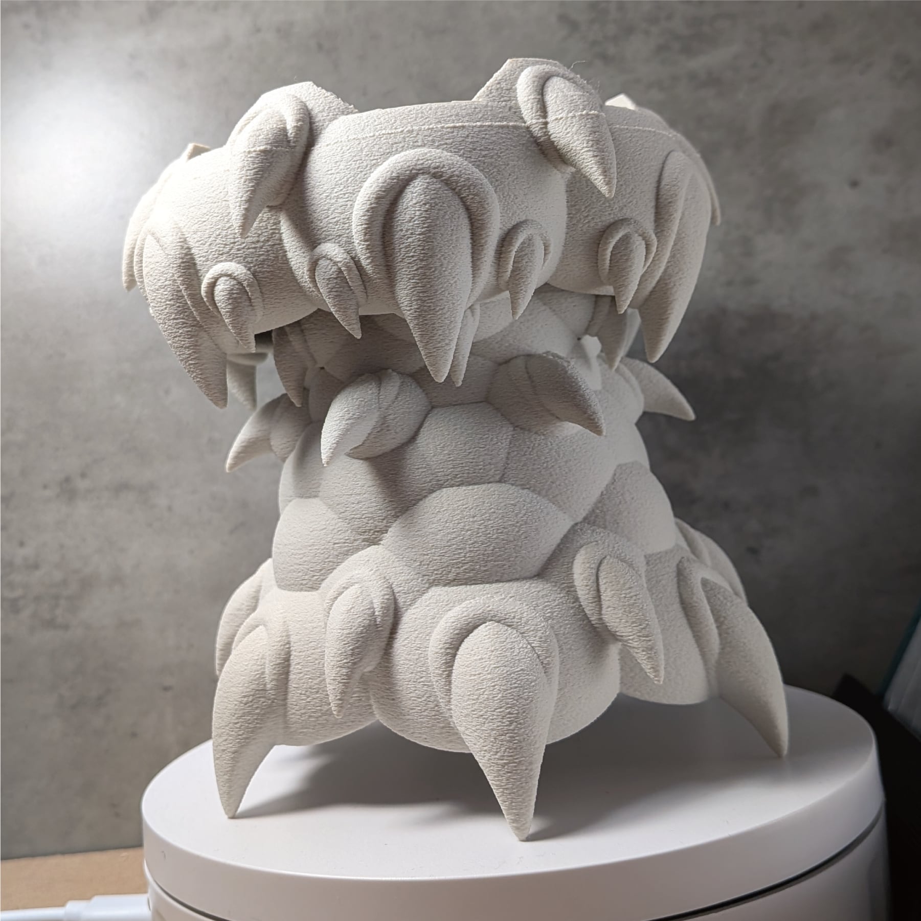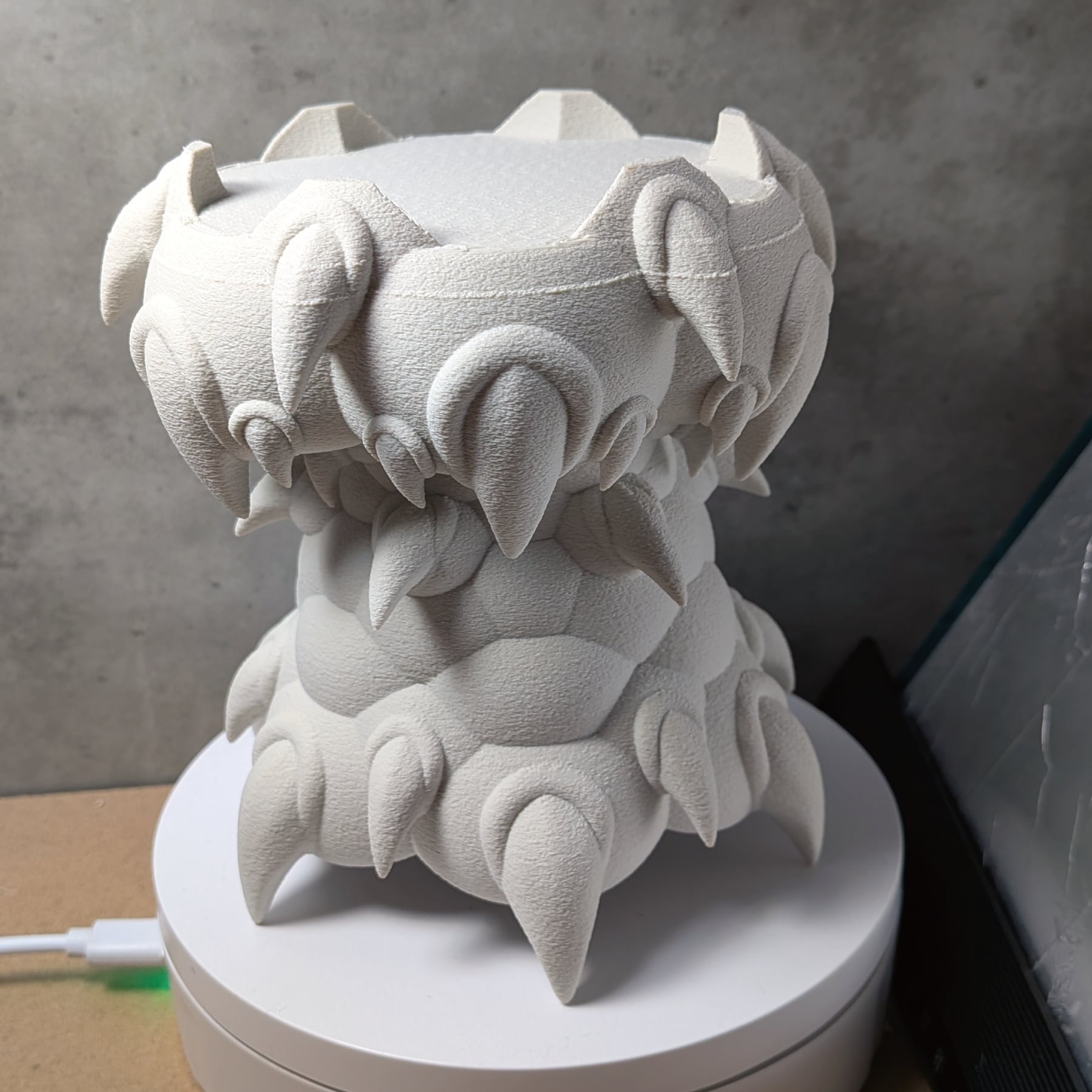 3Dプリンターで作成した商品のため積層痕などあります。また、底部分は艶がでます。足つきなど逆さの造形の場合は最上層に艶があります。