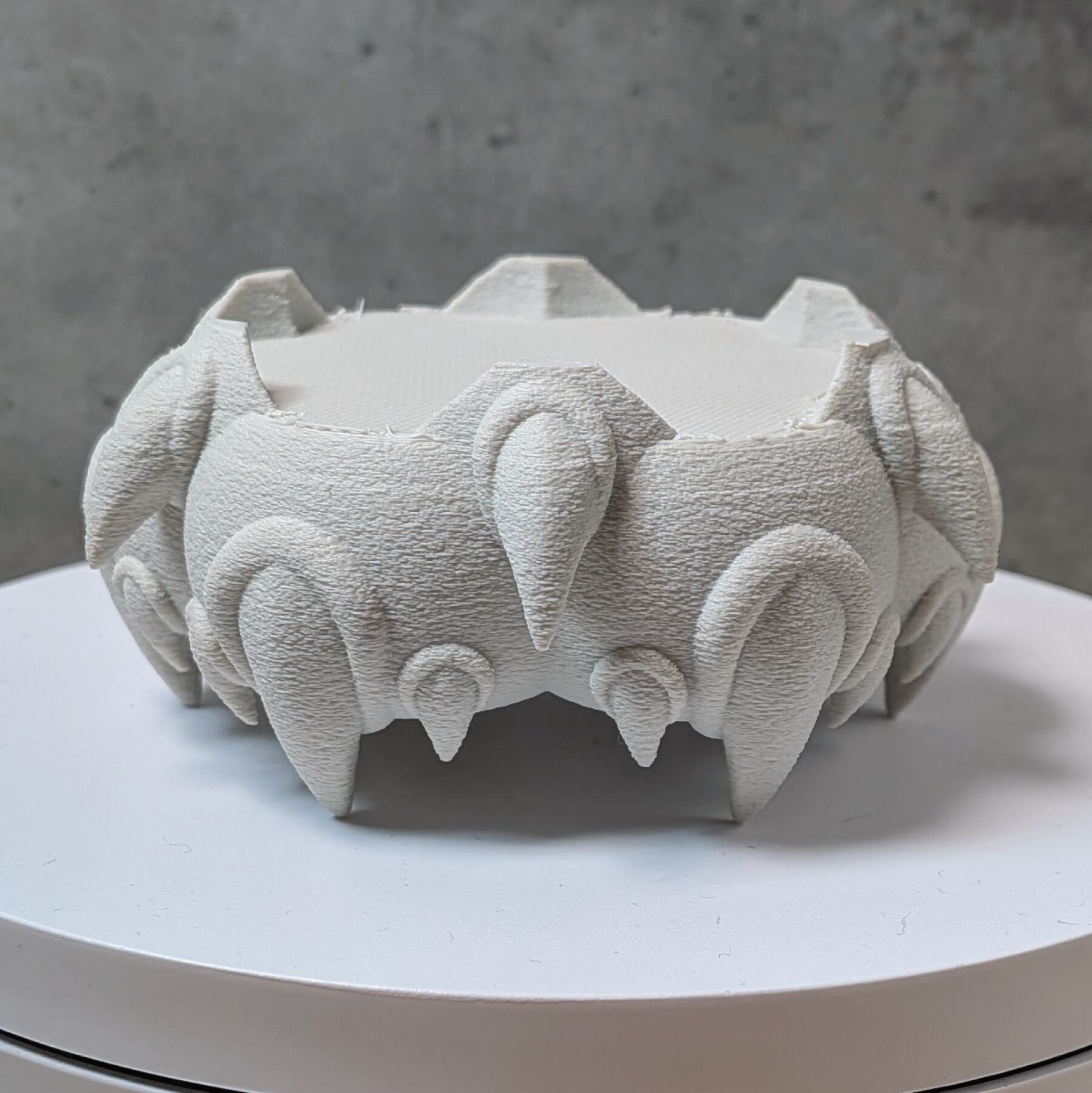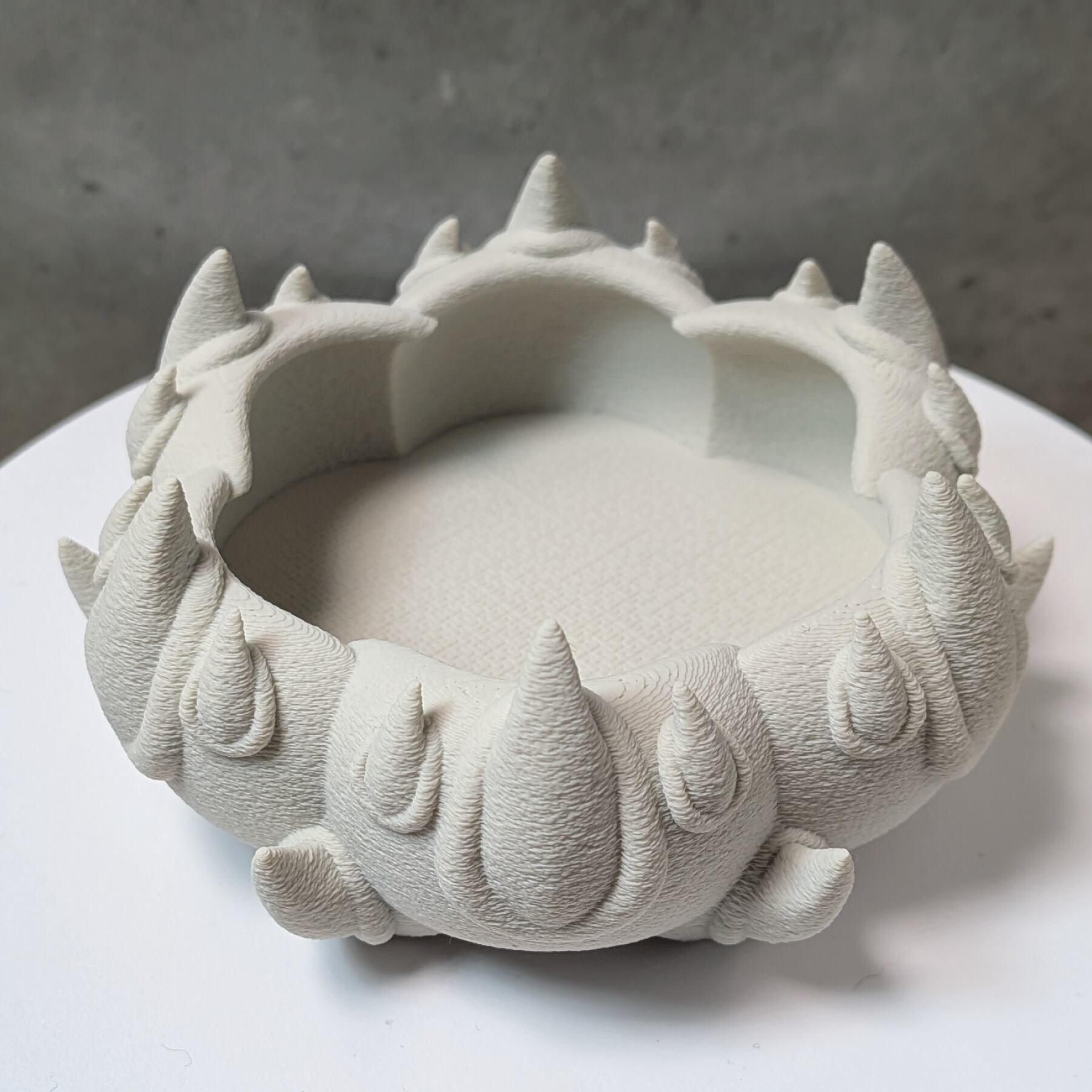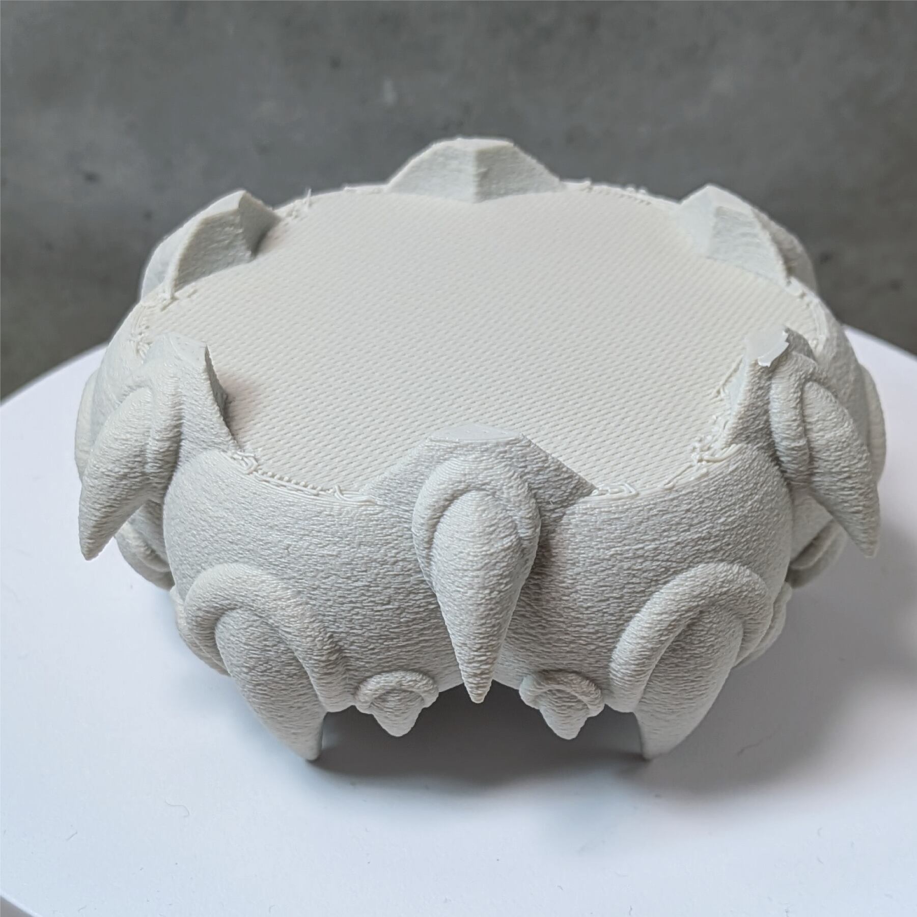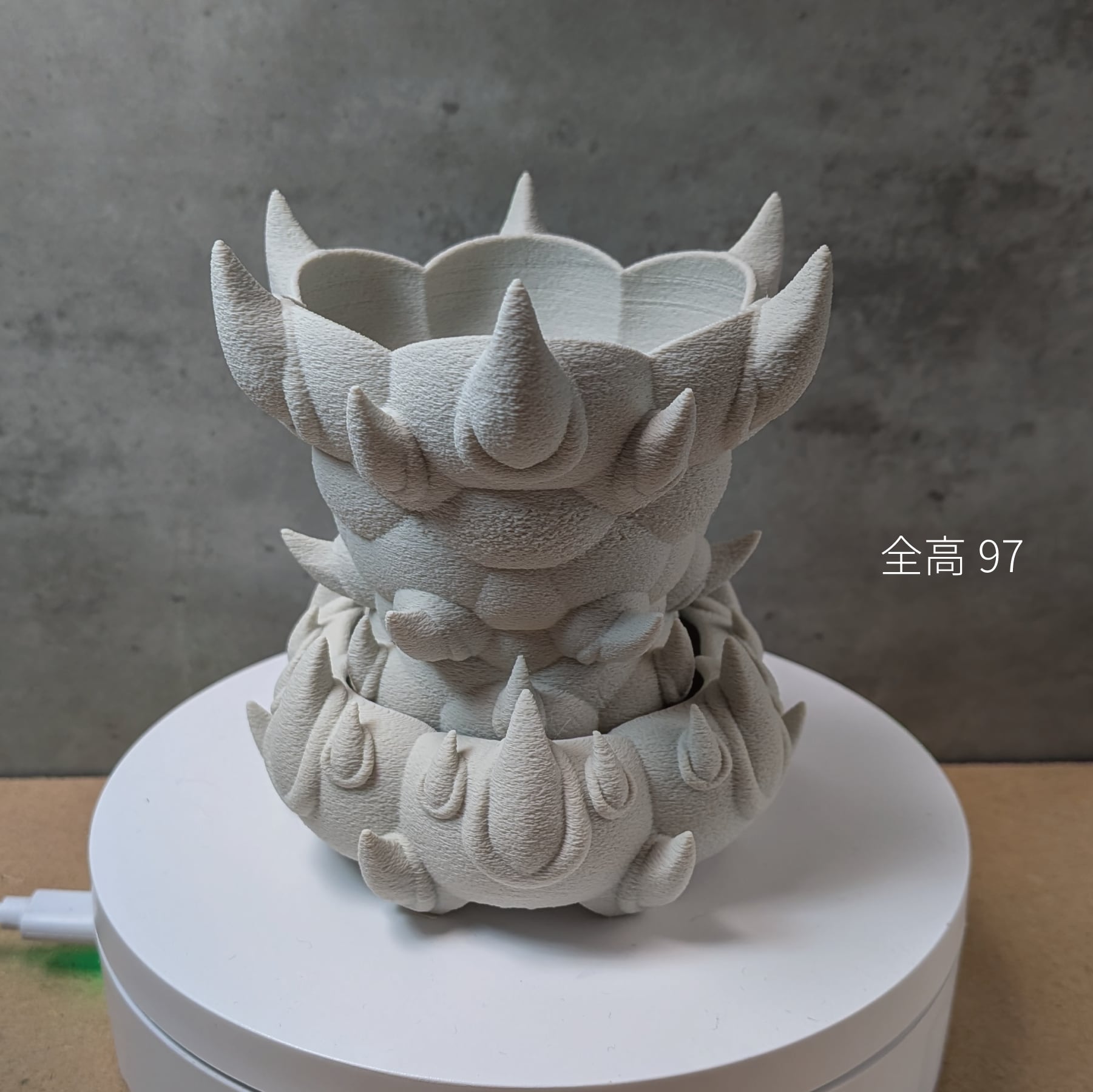 3Dプリンターで作成した商品のため積層痕などあります。また、底部分は艶がでます。足つきなど逆さの造形の場合は最上層に艶があります。