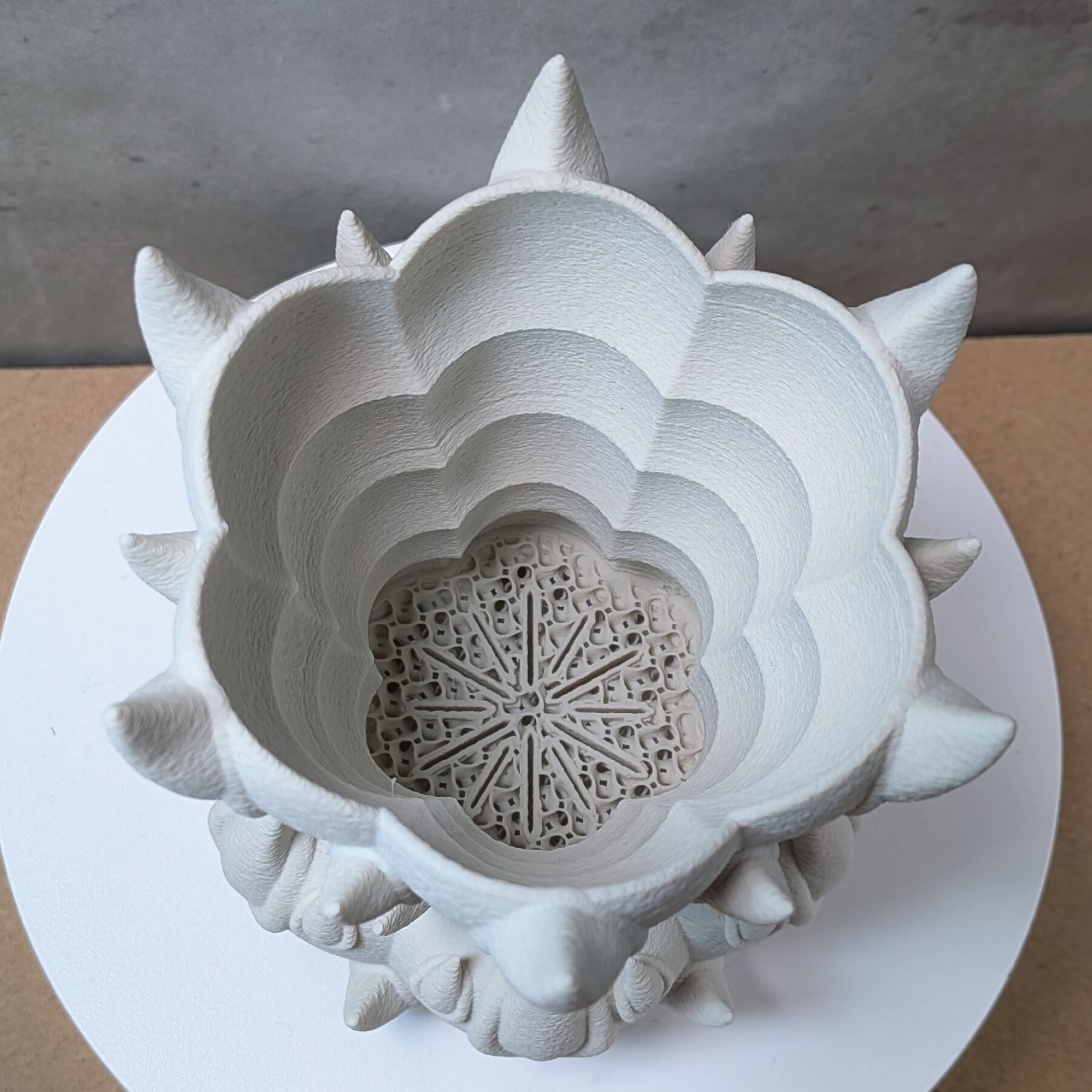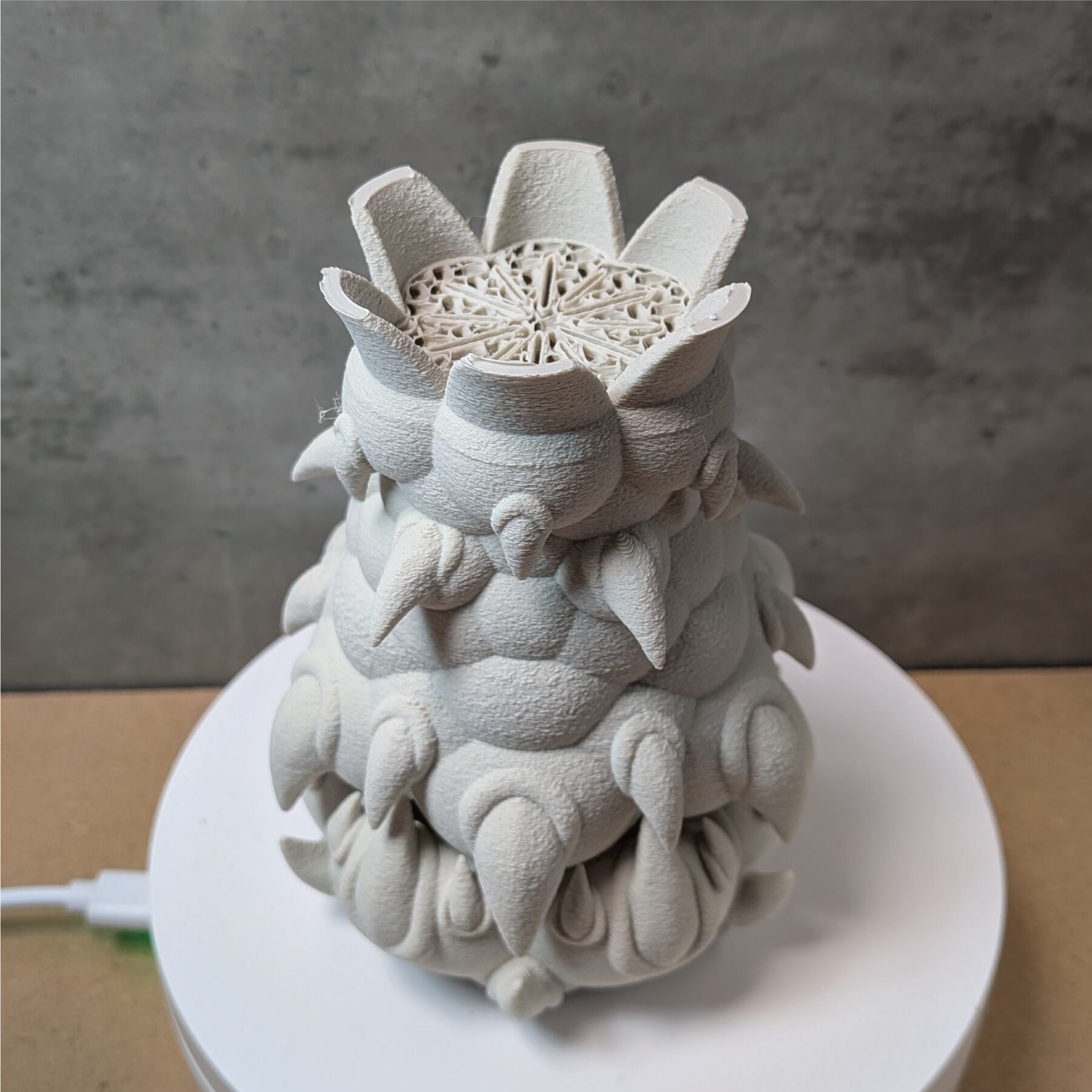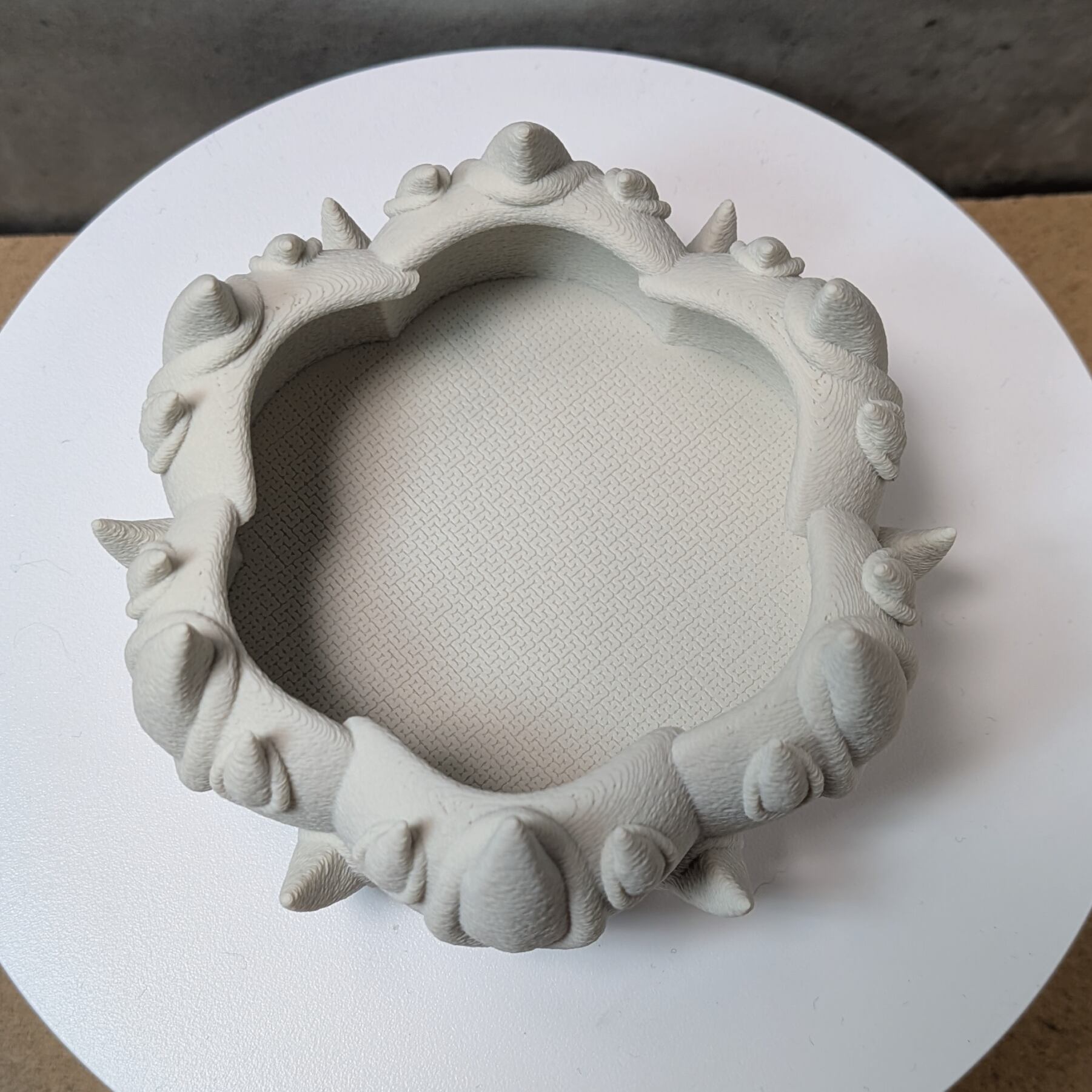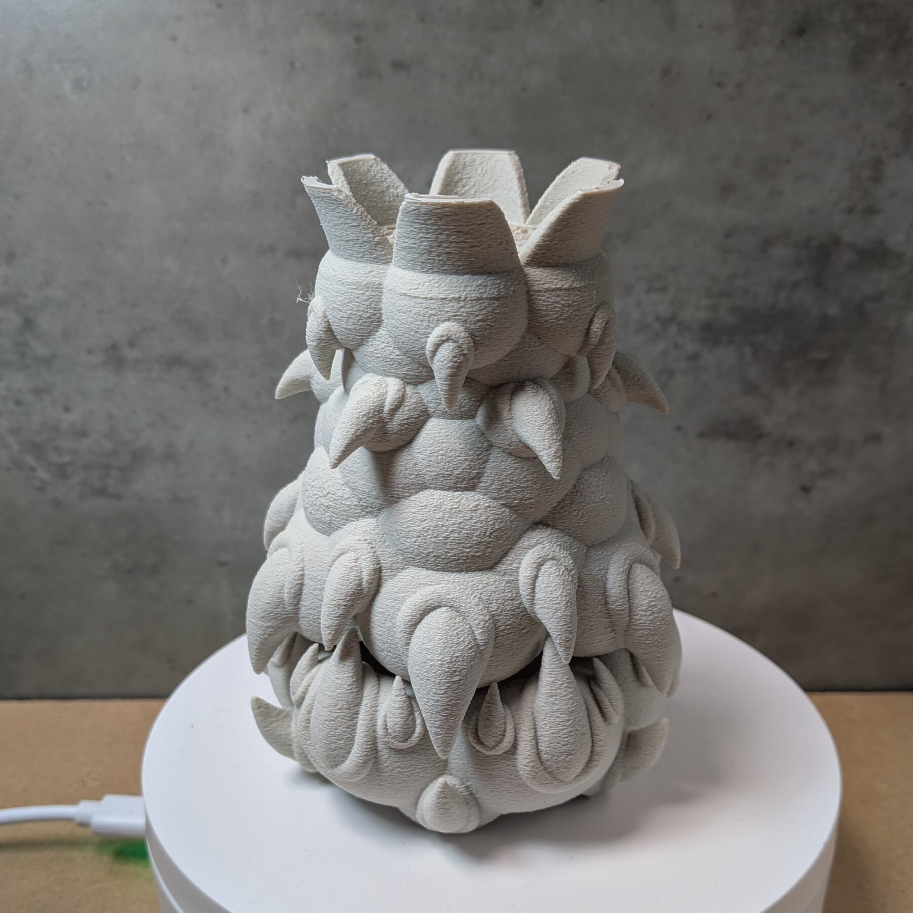 3Dプリンターで作成した商品のため積層痕などあります。また、底部分は艶がでます。足つきなど逆さの造形の場合は最上層に艶があります。
