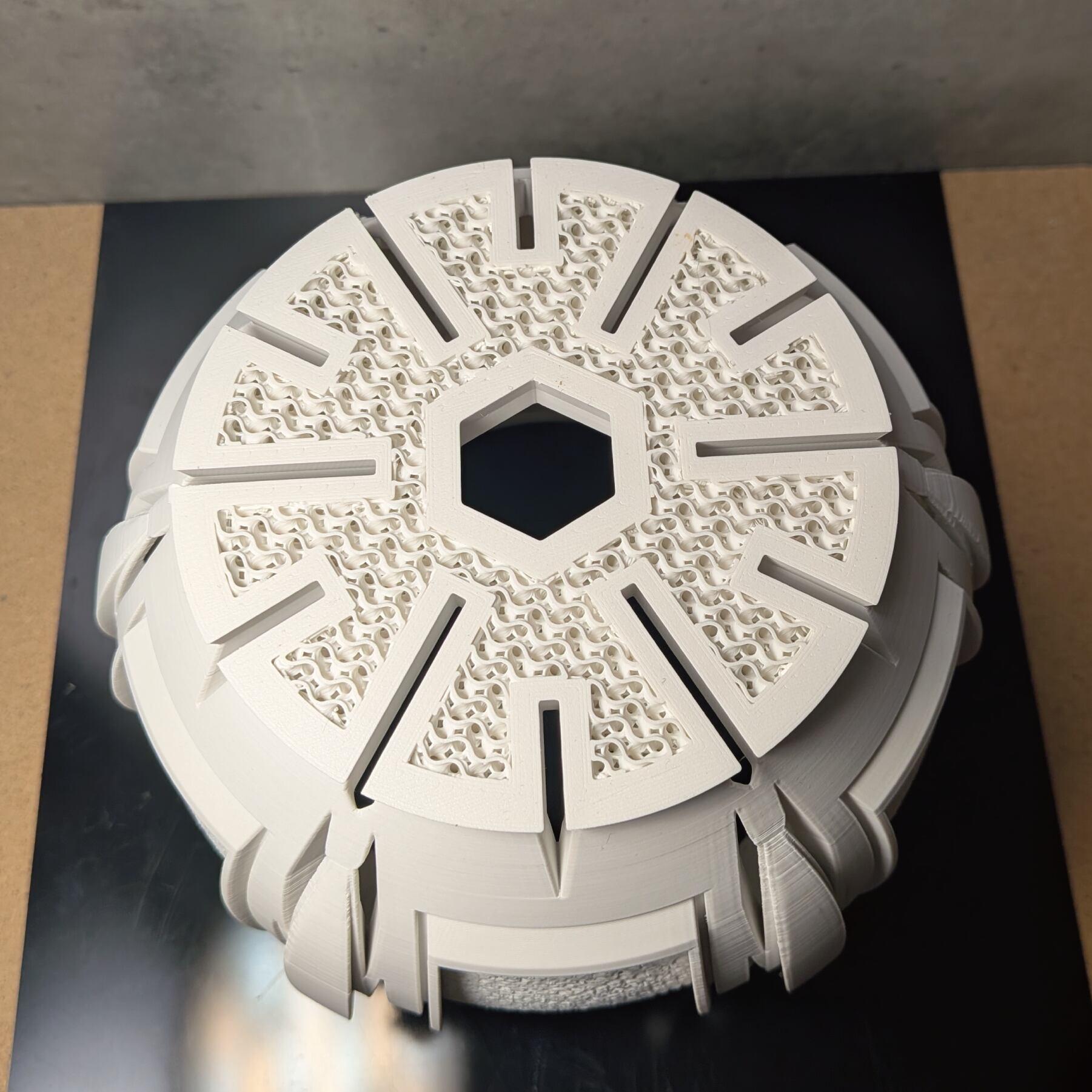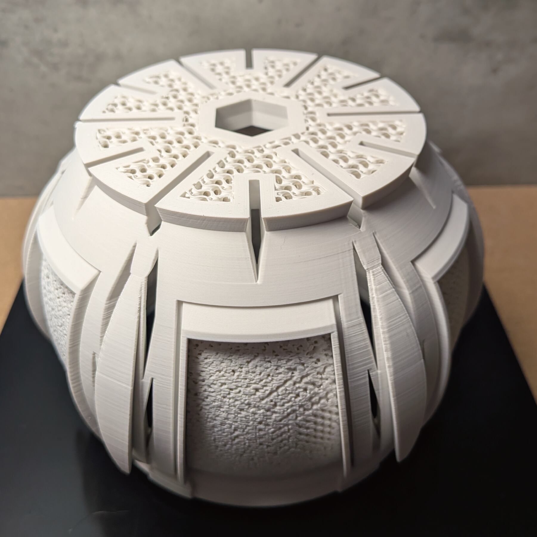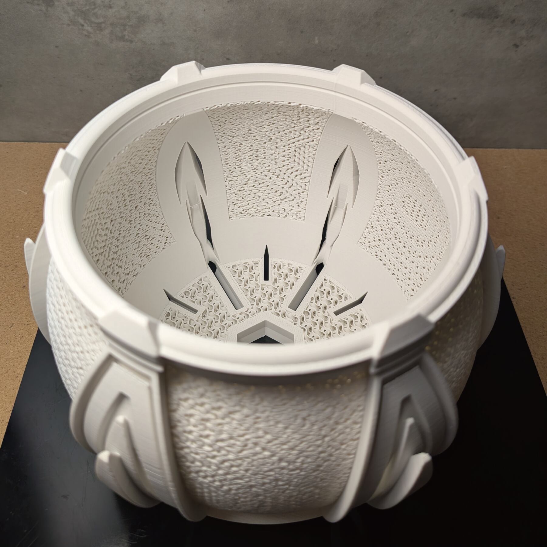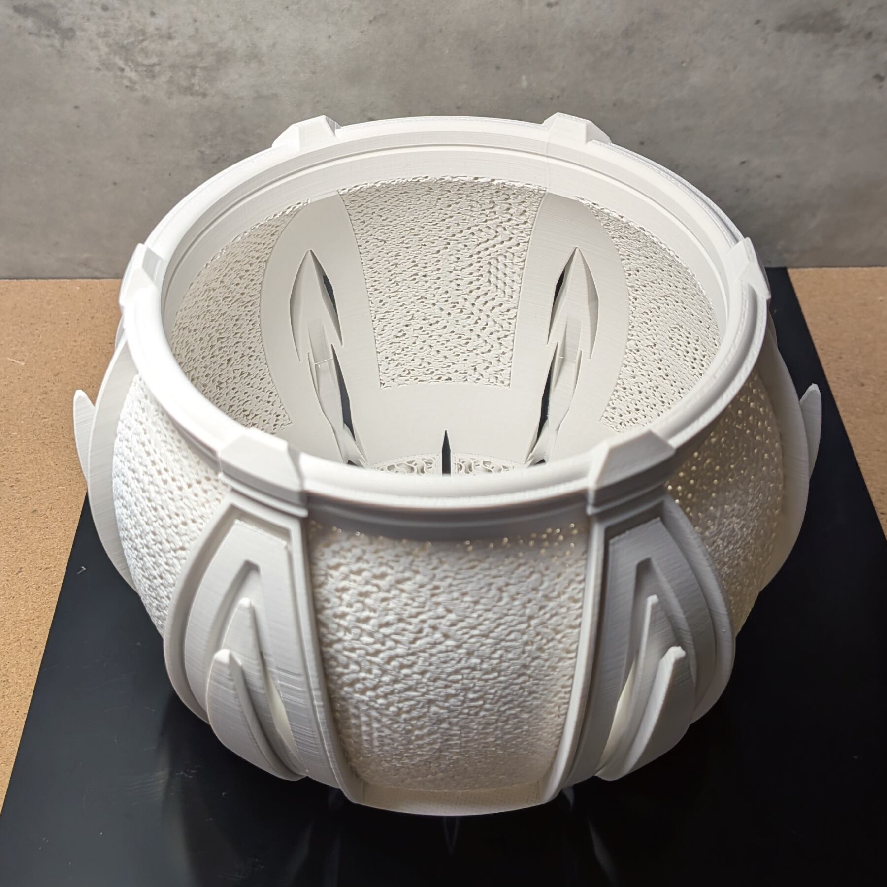 植物の生育が加速してほしい、という願い。そして、生命感あふれる丸みの美しさ。この二つを掛け合わせることから、「ALVEA (アルヴェア)」は生まれました。機能性を追求する過程で生まれた、花びらを思わせる有機的なフォルム。その脇に設けられたスリットは、製造の困難を乗り越えて実現した、機能と美の境界線です。緻密に計算されたジャイロイドメッシュと装飾的なディテールが、植物の生命力を静かに、そして力強く引き立てます。
