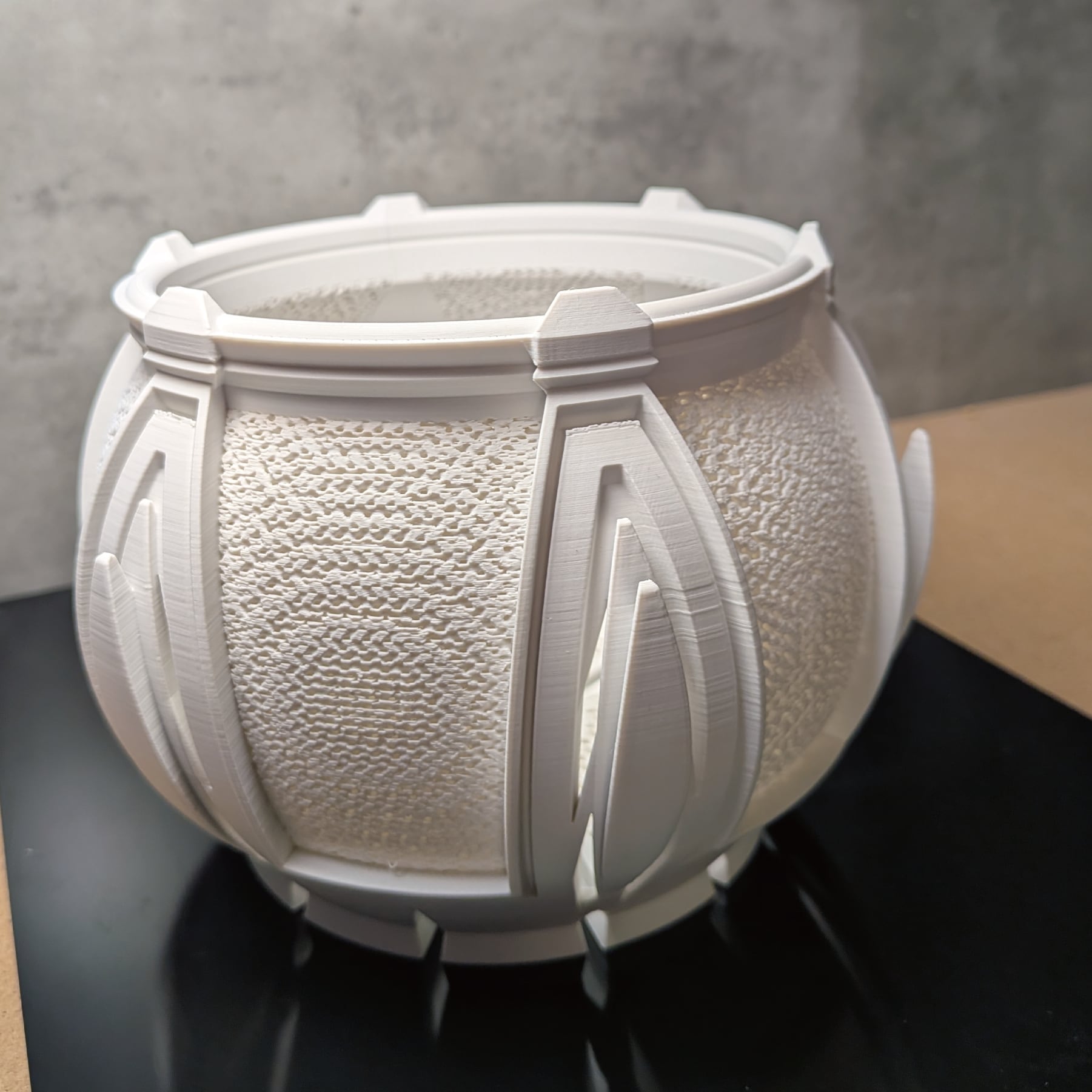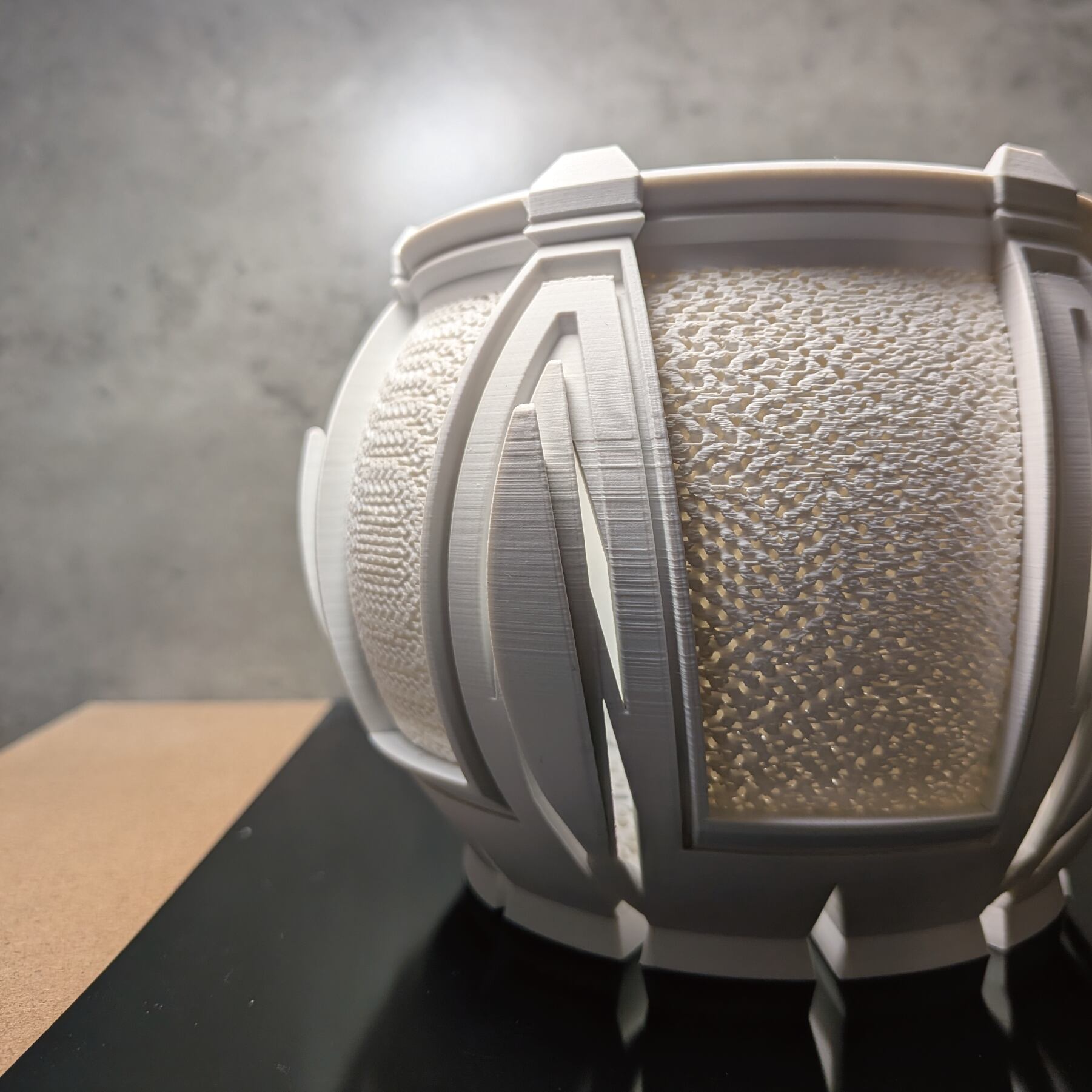3Dプリンターで作成した商品のため積層痕などあります。また、底部分は艶がでます。足つきなど逆さの造形の場合は最上層に艶があります。
