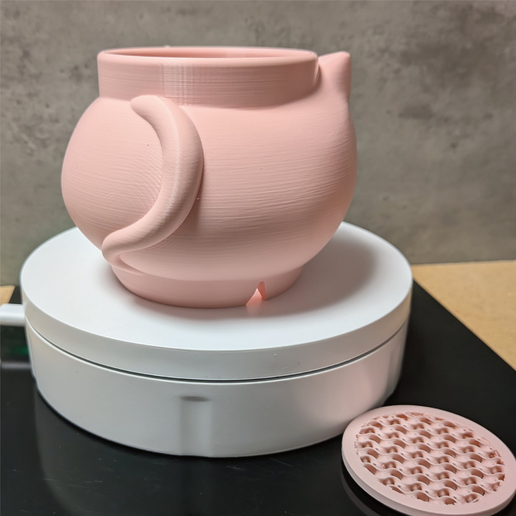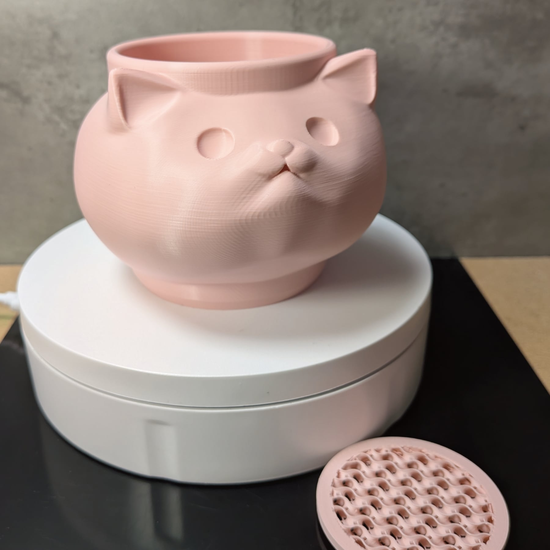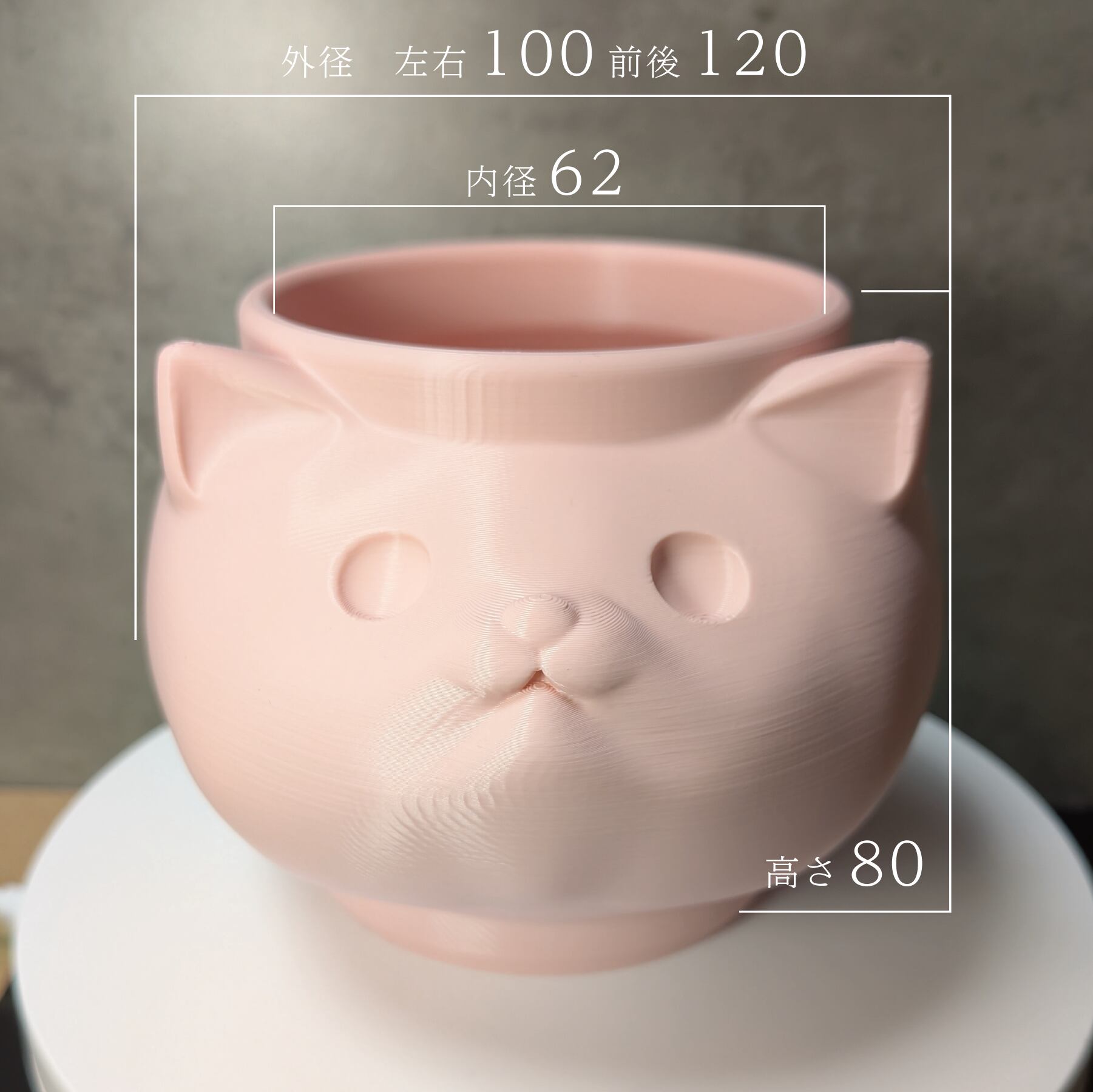 3Dプリンターで作成した商品のため積層痕などあります。また、底部分は艶がでます。足つきなど逆さの造形の場合は最上層に艶があります。